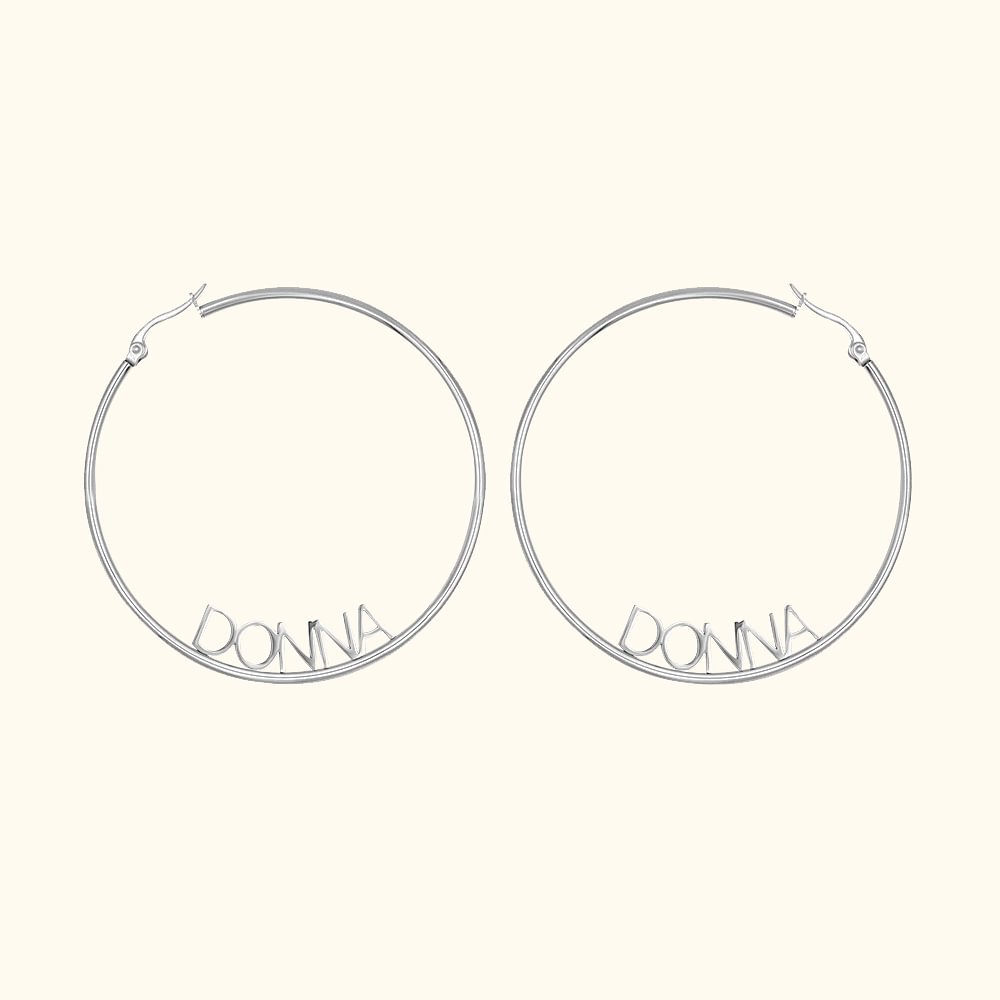 -Estos pendientes ofrecidos por Callie tienen una línea circular sencilla y elegante decorada con una inscripción personalizada en forma de bloque, su nombre o palabras especiales encontrarán su lugar perfecto en este brillante aro. Disponible en tres tamaños de aro diferentes cuyo diámetro oscila entre 50 mm y 70 mm, no hay necesidad de preocuparse por el tamaño es demasiado grande o no lo suficientemente grande, sólo mostrar su estilo con el tamaño que desee. Una manera distintiva para vestir a diario se ve y adecuado para el trabajo o el ocio atuendo.