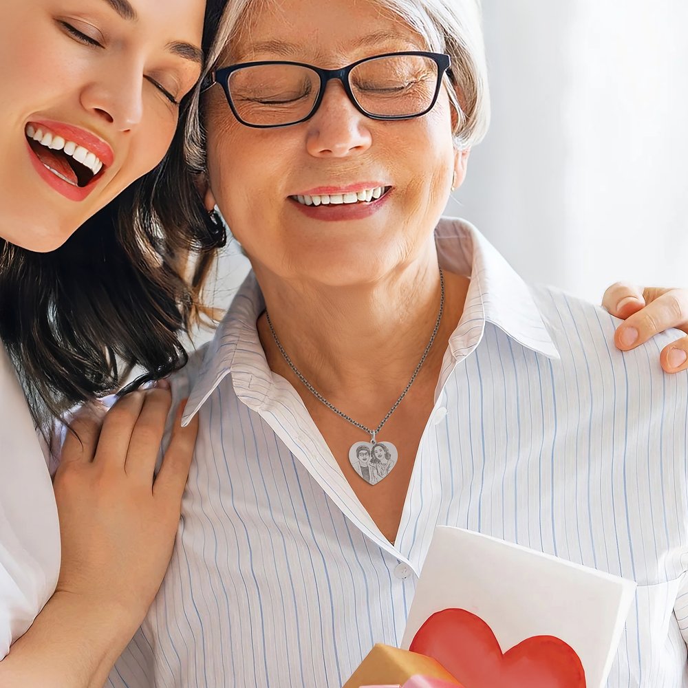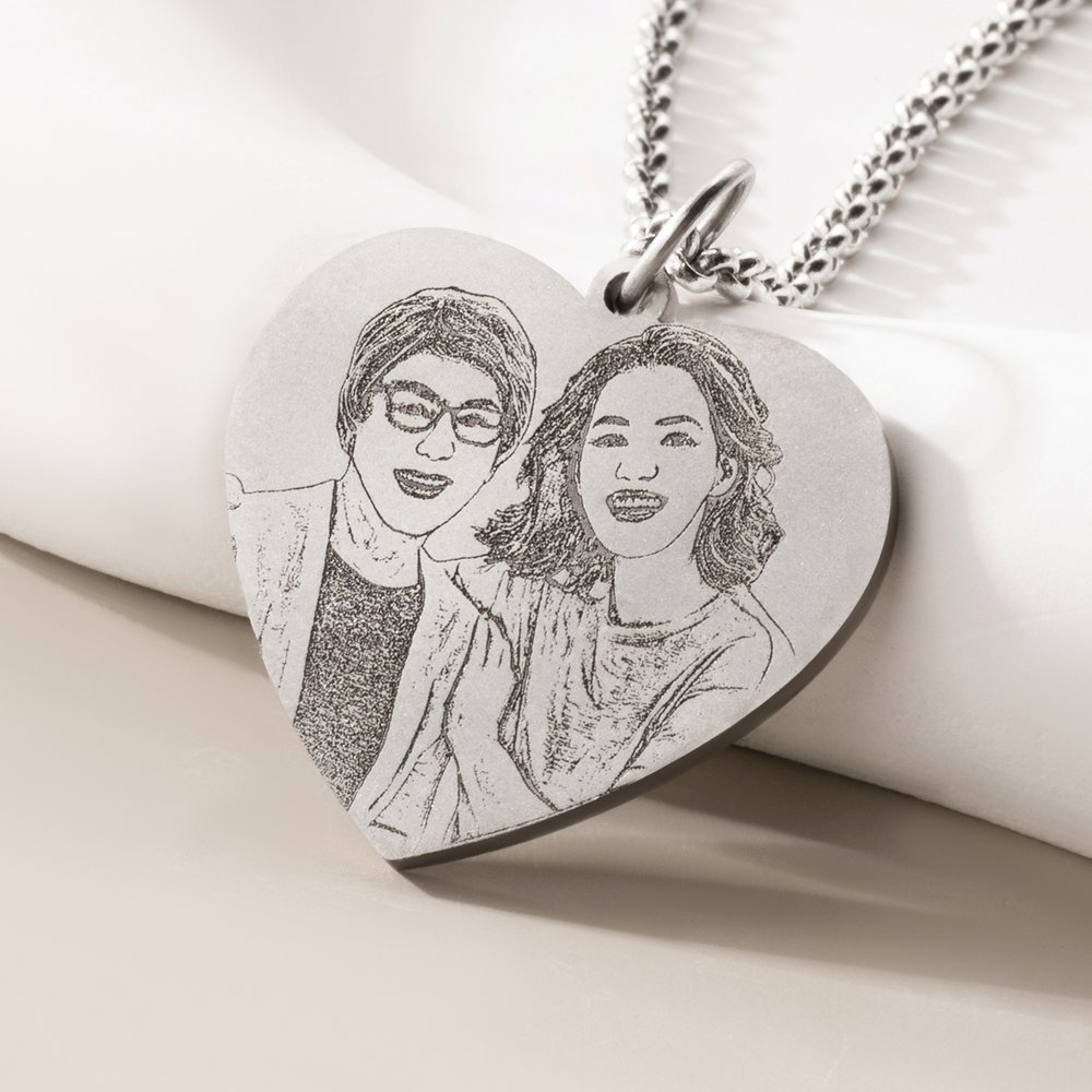 Personalizado grabado collar de la foto del corazón con el texto cumpleaños aniversario regalo para la familia amigo