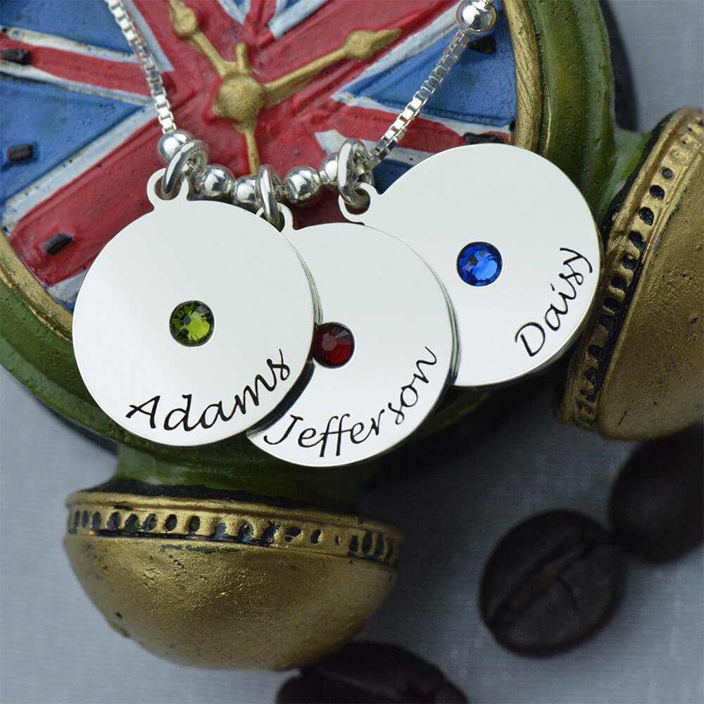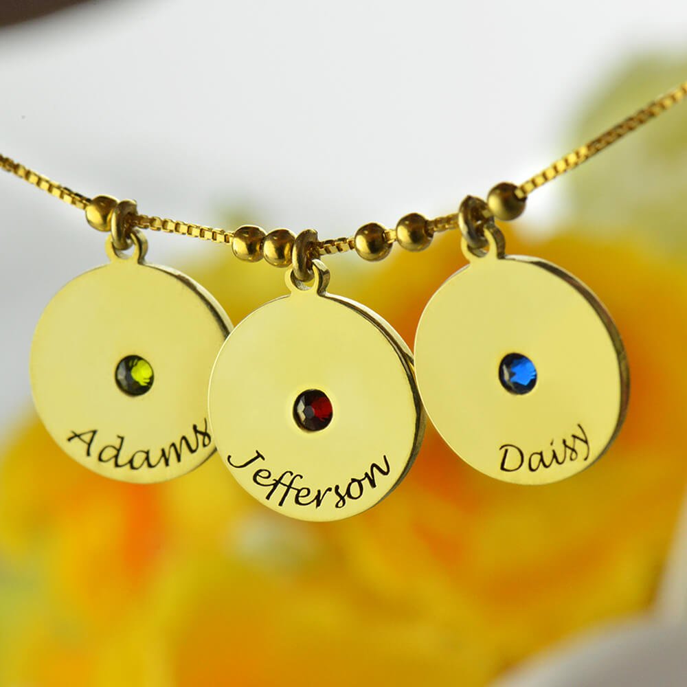 -Este colgante de Callie está inspirado en el signo de la moneda redonda. Representando la unidad y la perfección, el estilizado colgante redondo de metal lleva grabados los nombres de sus familiares o amigos, evocando la estrecha relación entre usted y él/ella.
