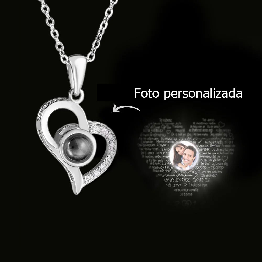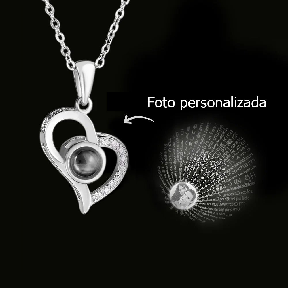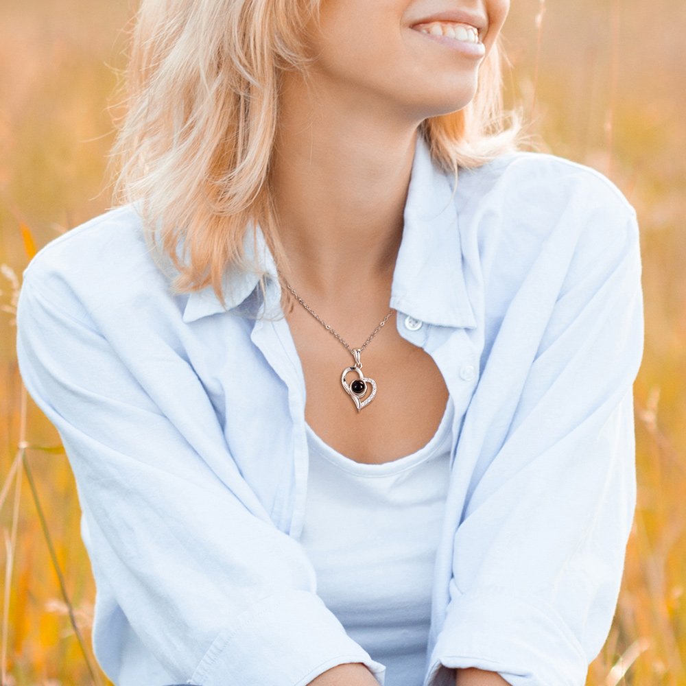 Collar personalizado de plata esterlina con corazón hueco y proyección de foto con Te amo en 100 idiomas regalo de cumpleaños para ella