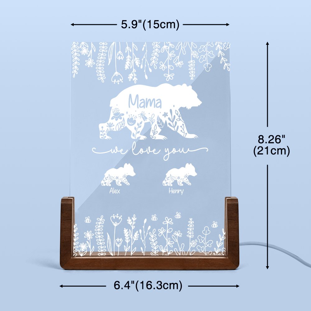Nuestra luz nocturna incluye flores, una mamá oso y simpáticos ositos bebé, cada uno de ellos realista y lleno de calidez. Puede elegir entre 1 y 12 ositos de peluche y personalizar el nombre de su hijo para que el regalo sea más único y exclusivo.