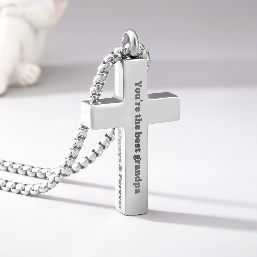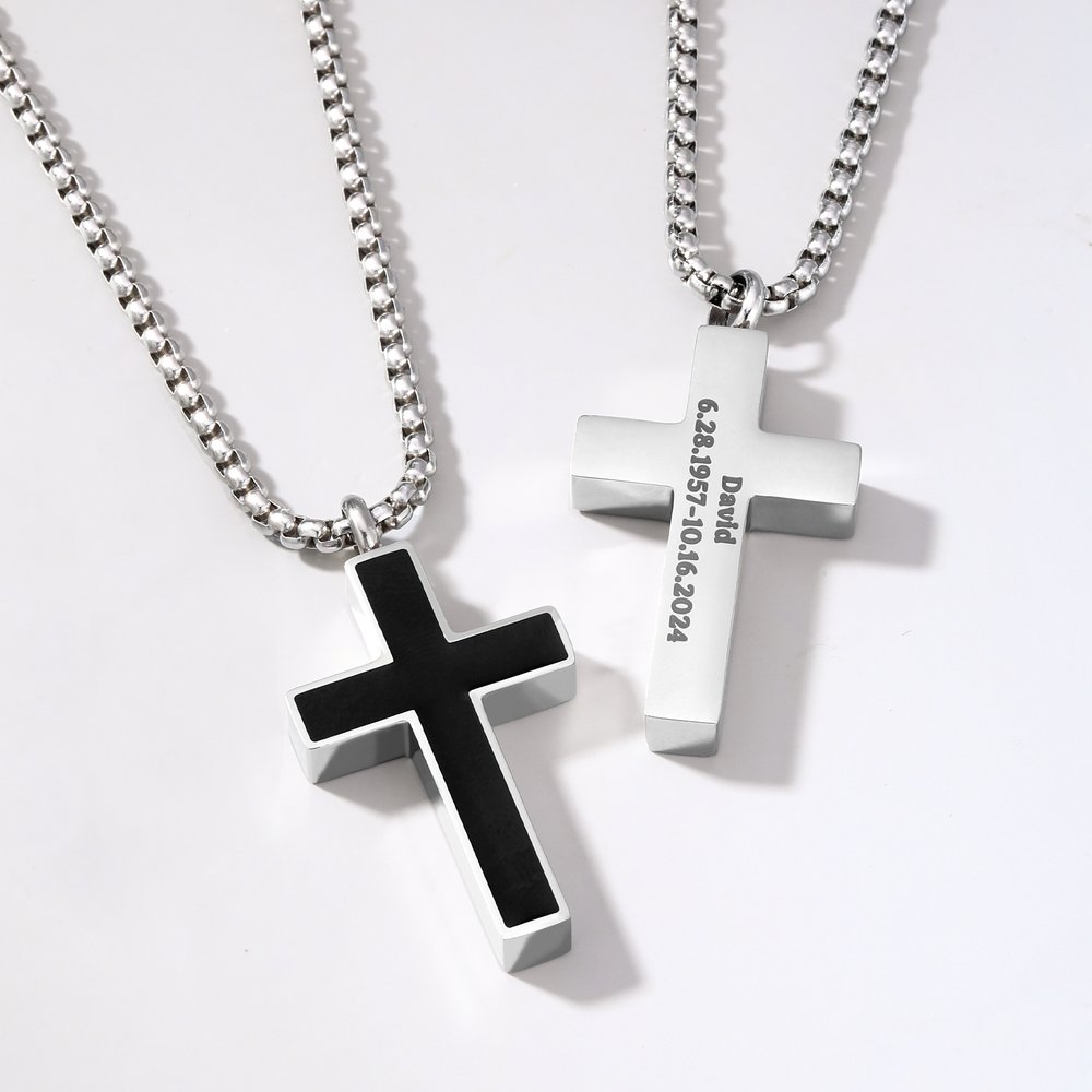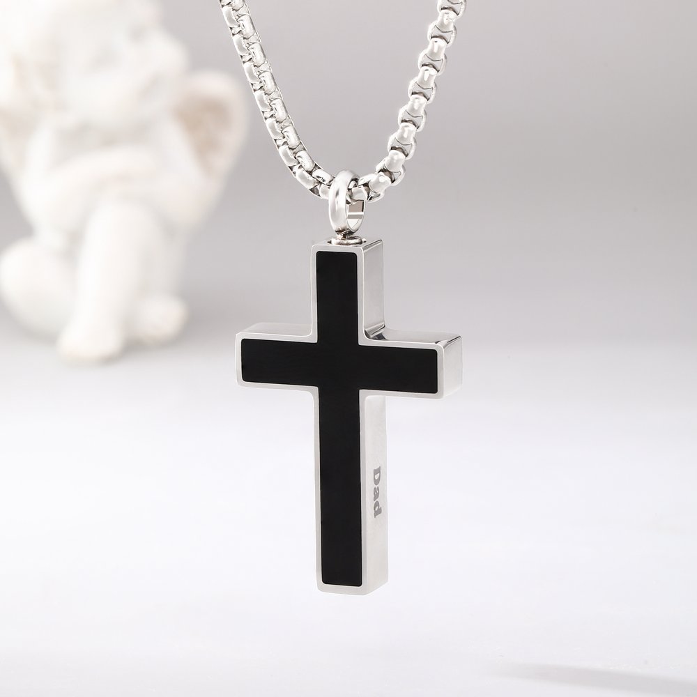 Este collar de cremación con diseño de cruz es un sentido homenaje. Con tres superficies de oxidación negra para contener una pizca de cenizas, es un regalo significativo para recordar a seres queridos o mascotas. Esta pieza simbólica ofrece comodidad, permitiéndole mantener el amor y la fe cerca en todo momento.