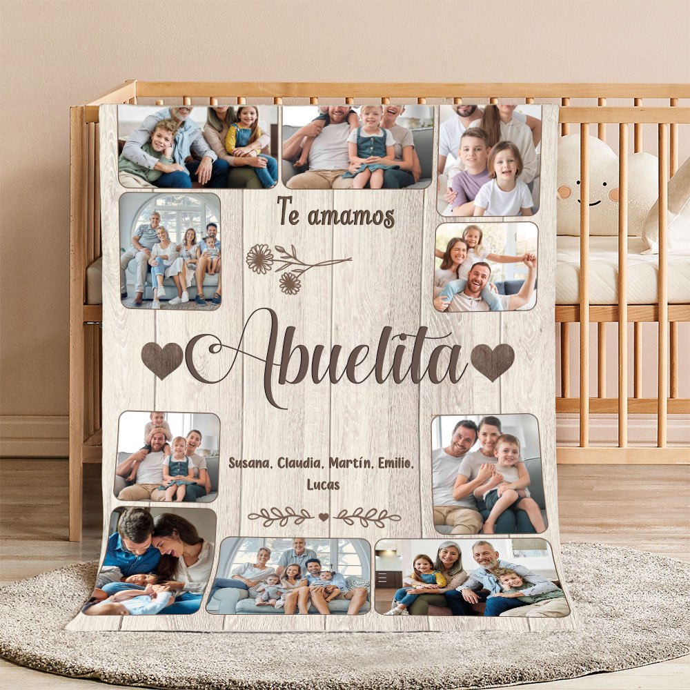 Celebra el profundo y entrañable vínculo entre generaciones con la manta. Sube hasta 10 fotos familiares y de 1 a 8 nombres para crear un emotivo collage. Cada imagen cosida en esta manta se convierte en un recordatorio de recuerdos inolvidables y del calor de la familia.
