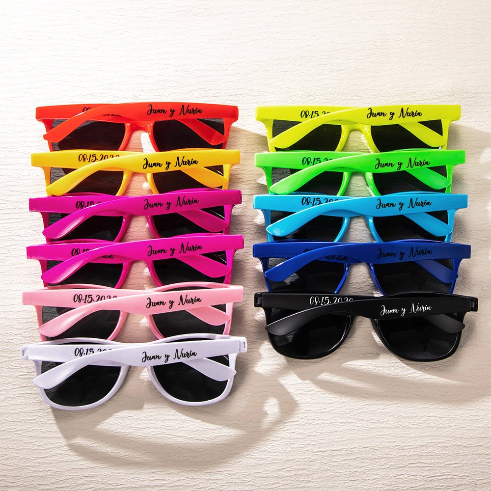 Este artículo para fiestas contiene un total de varios pares de gafas de sol. Las gafas de sol multicolor se pueden personalizar con texto. Colores brillantes y vivos de gafas de sol te trae buen humor, sin embargo, dejar que se conviertan en más llamativo en todo tipo de fiestas y actividades.
