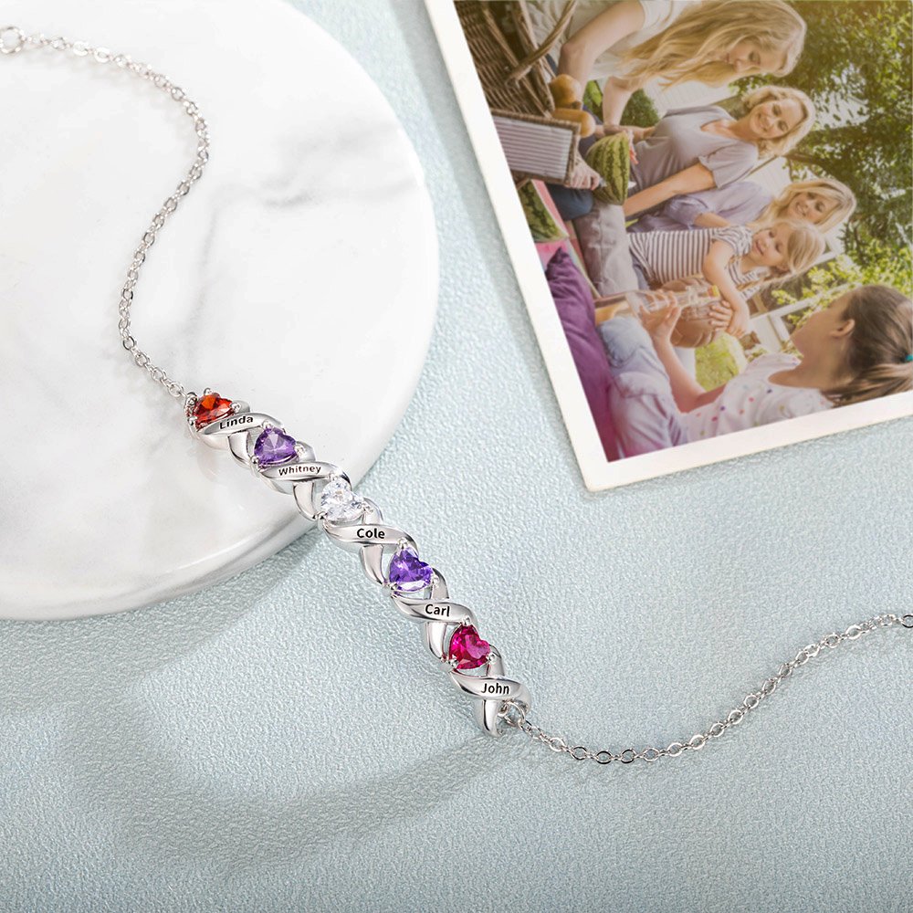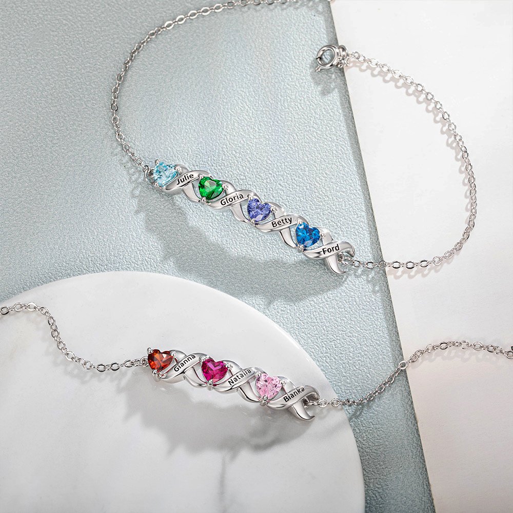 | Característica: | Brillo lustroso, piedra de nacimiento corazón, pulsera familiar |