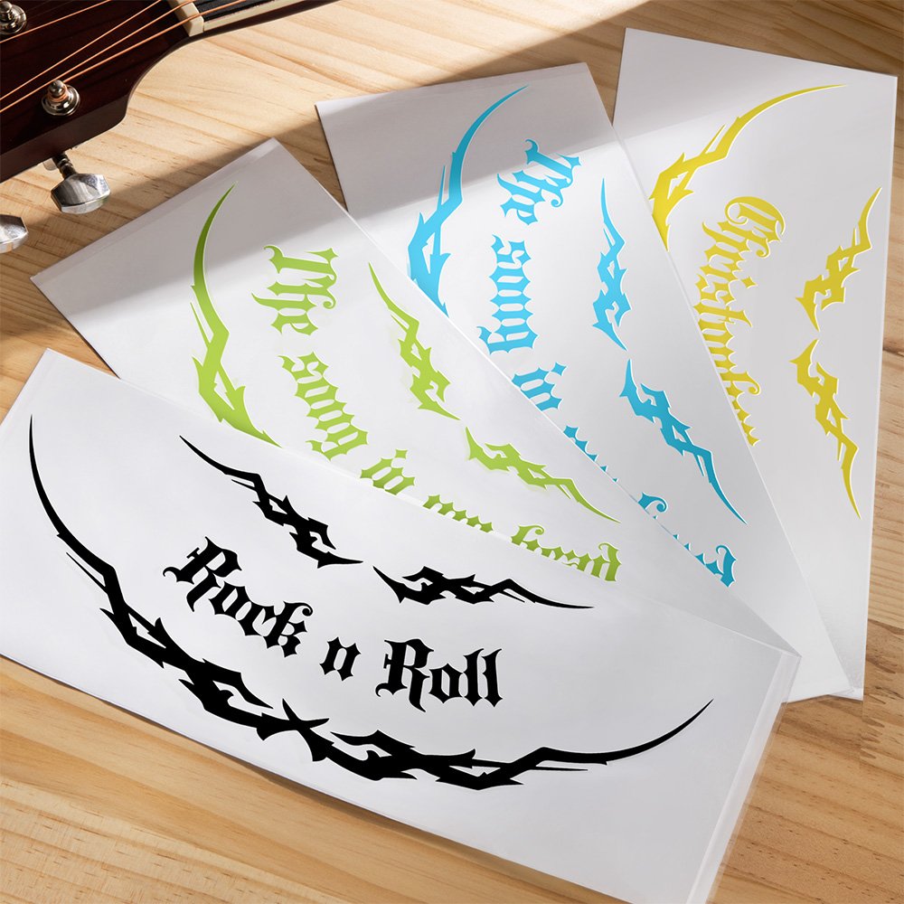 ¡Destaca aún más con la opción de personalizar estas calcomanías con tu texto! Tanto si quieres mostrar el nombre de tu grupo, la letra de tu canción favorita o tu declaración, estas pegatinas te permiten añadir un toque personal a tu instrumento. Es una gran manera de mostrar su estilo único y hacer una declaración en el escenario o durante las sesiones de improvisación.