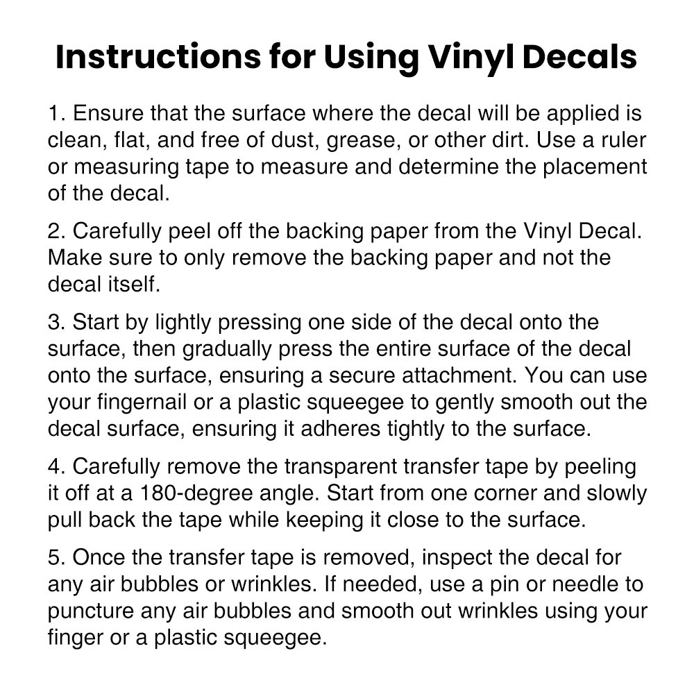 1. Limpie la superficie y manténgala seca. Evite usar herramientas ásperas o limpiadores corrosivos fuertes al limpiar. 2. Despegue el papel de soporte blanco, dejando el diseño en la lámina transparente. 3. Aplique la película transparente de transferencia con la cara adhesiva sobre la ventana. 4. 4. Utilice un rascador o una tarjeta para eliminar lentamente las burbujas de aire antes de despegar lentamente la película protectora.
