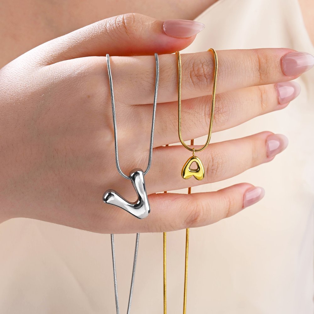 Con encantadores colgantes de letras de globo en 3D, este collar ofrece estilos de letras grandes y pequeñas para un estilo versátil. Mezcla y combina ambos estilos para crear un look realmente personalizado que exprese tu individualidad.