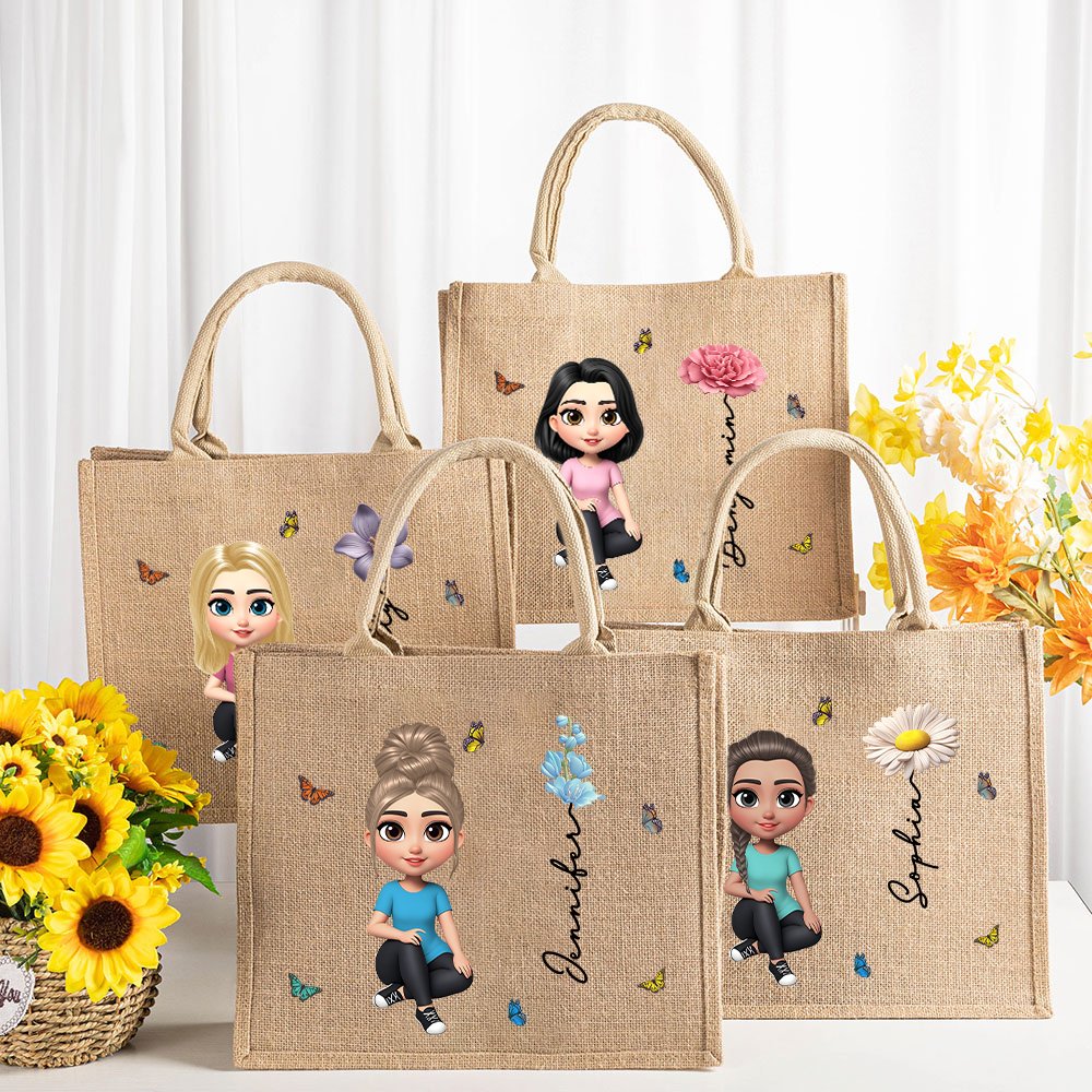 Este bolso de mano muestra un elegante clipart de una niña de dibujos animados en 3D personalizado a partir de su imagen, combinado con un estampado de flores de nacimiento en 3D. El diseño viene con mariposas revoloteando, lo que hace que toda la bolsa sea más romántica. También puede personalizar su nombre, añadiendo un toque de encanto único.