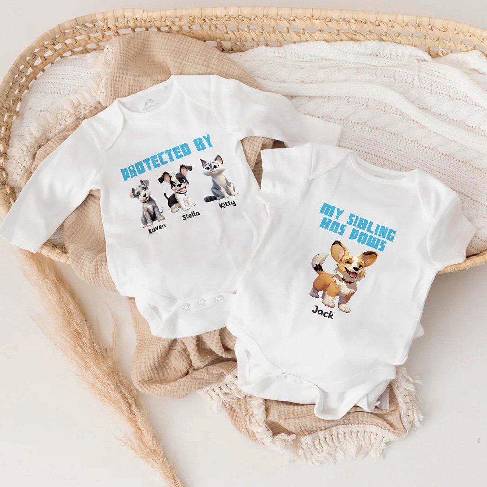 Este body personalizado con una mascota de dibujos animados en 3D es más que una prenda de uso diario para tu pequeño: es un regalo lleno de amor y personalidad. Personalízalo con tus 1-4 adorables mascotas en un animado estilo de dibujos animados junto con sus nombres, para que cada body sea realmente único. También puedes elegir el texto "Protegido" o "Mis hermanos tienen patas", que sería un adorable reflejo de los peludos amigos de tu familia.