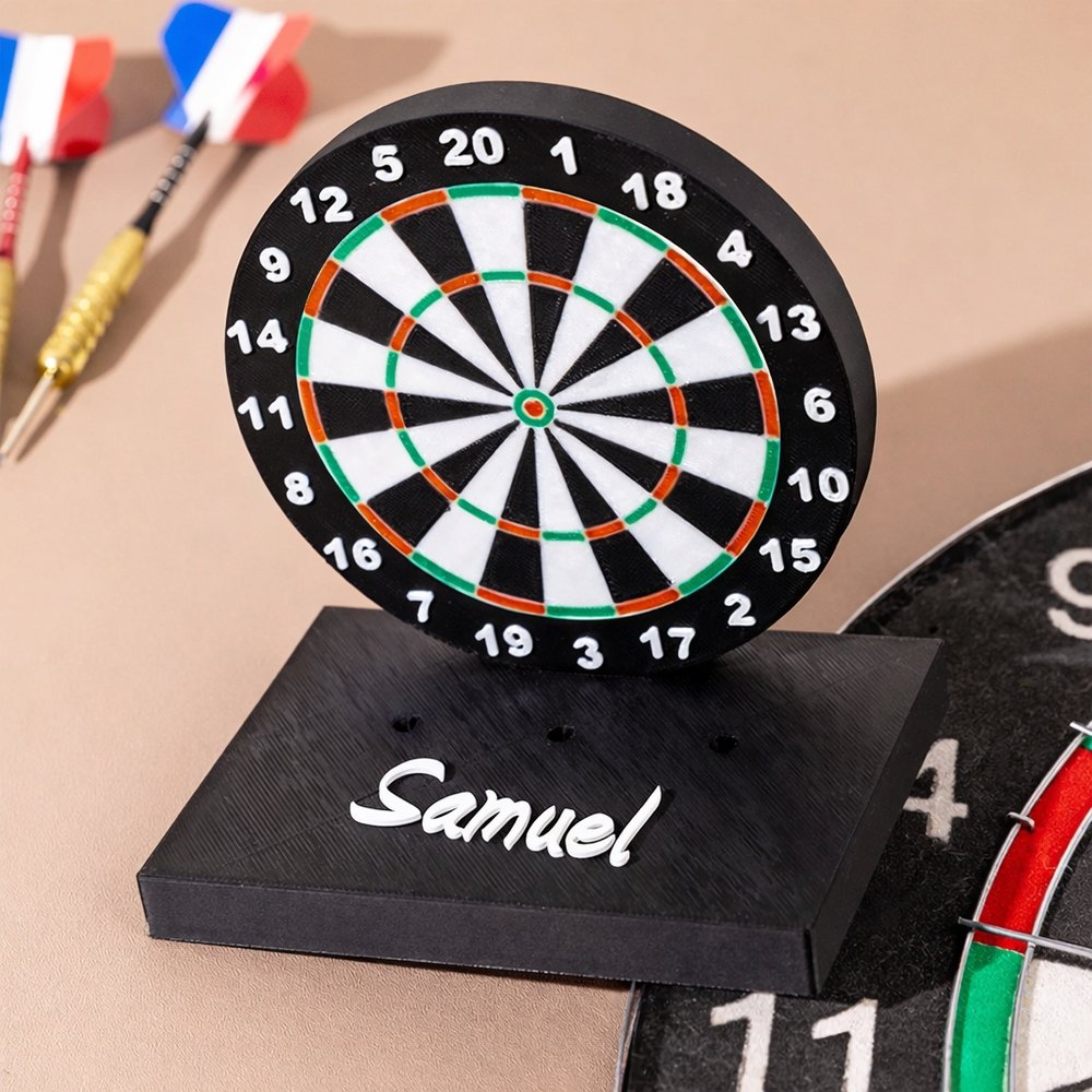 Este producto se inspira en los patrones realistas de las dianas de dardos y está fabricado mediante impresión 3D. Tiene texturas claras y restaura vívidamente los elementos clásicos de la diana de dardos, resaltando una fuerte atmósfera competitiva. Admite la personalización de texto. Ya sea un nombre, una fecha o un eslogan exclusivo, puede imprimirse en la base para añadir un toque de personalidad a tu espacio.