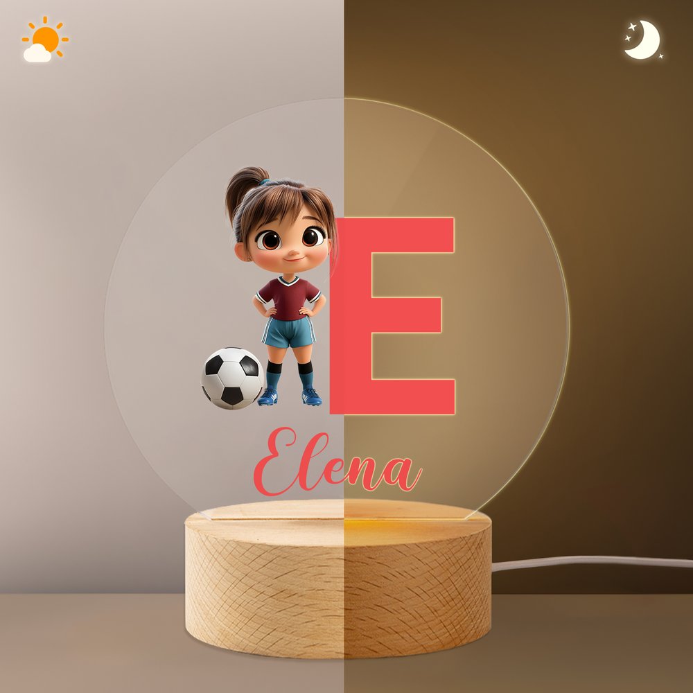 Esta luz nocturna tiene el fútbol como tema central, con personajes de dibujos animados en 3D que son vivos y dinámicos. Ya sea disparando o regateando, captura los momentos vibrantes del fútbol y tiene un fuerte sentido de tridimensionalidad. El nombre y la inicial o el número del niño pueden personalizarse e imprimirse en láminas acrílicas, integrándose hábilmente con elementos futbolísticos para hacer que la luz nocturna sea a la vez deportiva y personalizada, convirtiéndose en una llamativa decoración de la habitación.