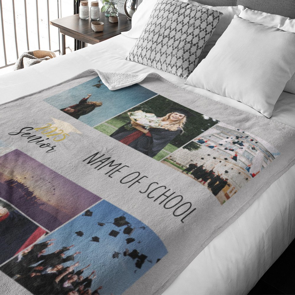 Esta suave manta de franela está especialmente diseñada para regalos de graduación de estudiantes, es un regalo de graduación perfecto para chicos y chicas graduados. Puede personalizar 9 fotos para hacer un regalo verdaderamente único y significativo para usted amó uno.