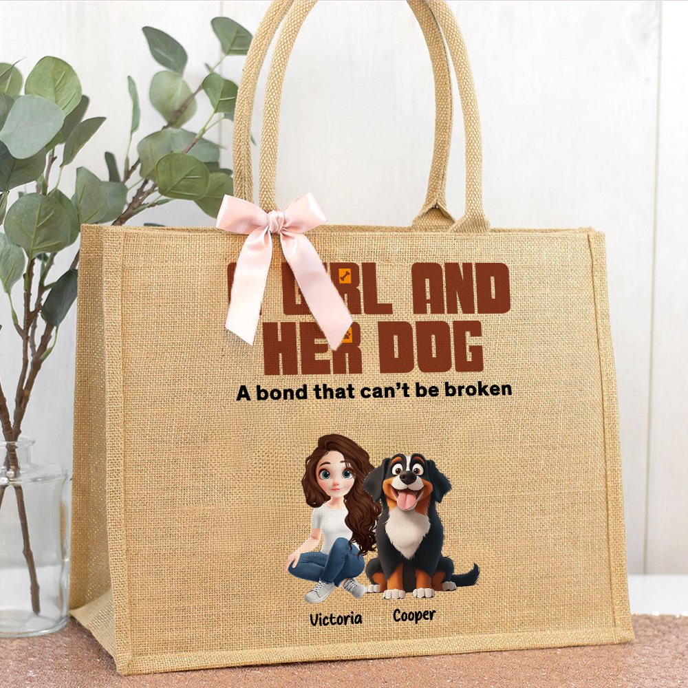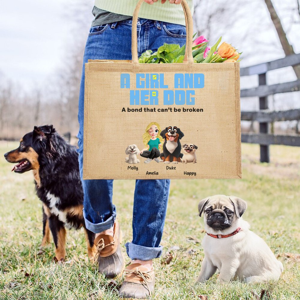 Esta funda para bolso presenta un diseño único de dibujos animados en 3D, y la imagen tridimensional y realista muestra la cálida relación entre la niña y su perro. Puedes personalizar su aspecto y añadir tu nombre y el de tu mascota, con el texto "Chica y su perro, un vínculo que no puede romperse", que añade un sentido de historia y profundidad emocional, convirtiéndolo en un recuerdo único y exclusivo.
