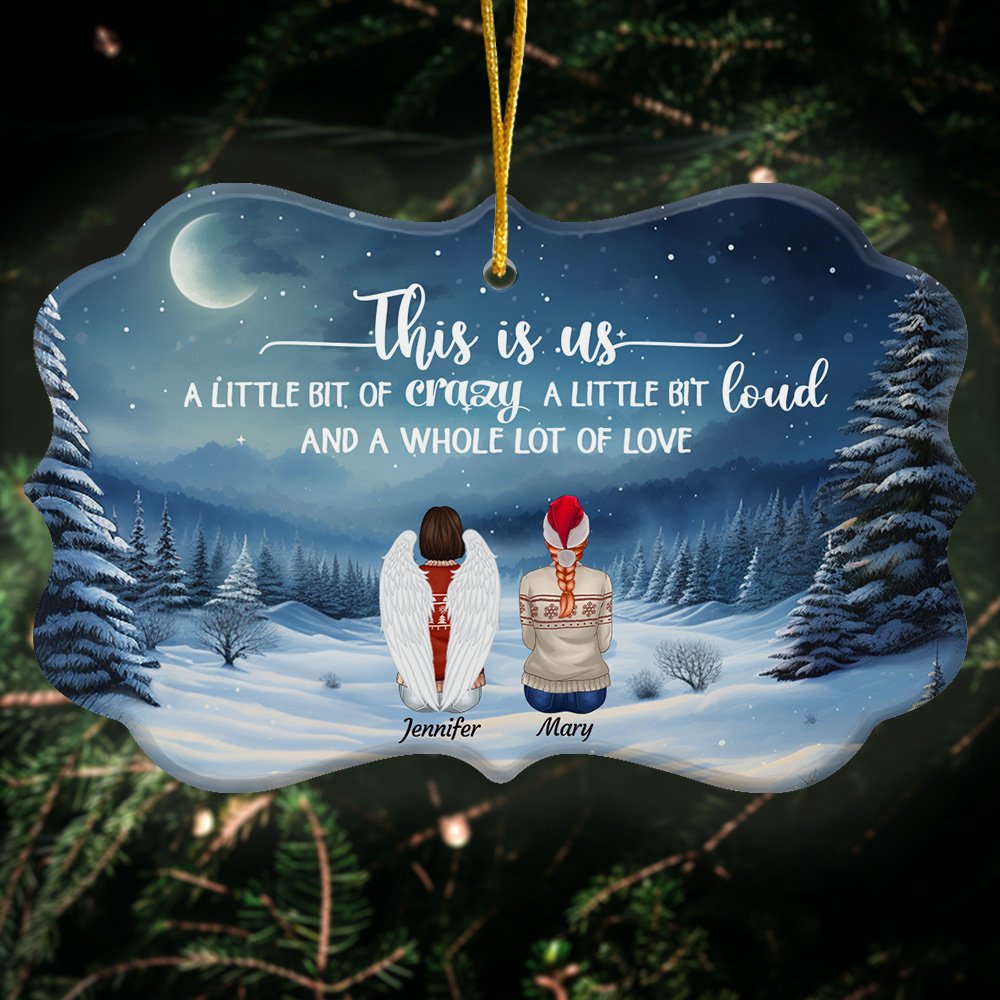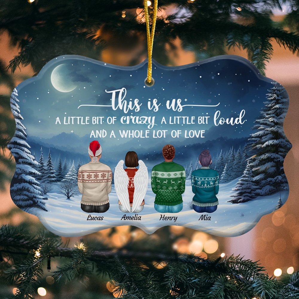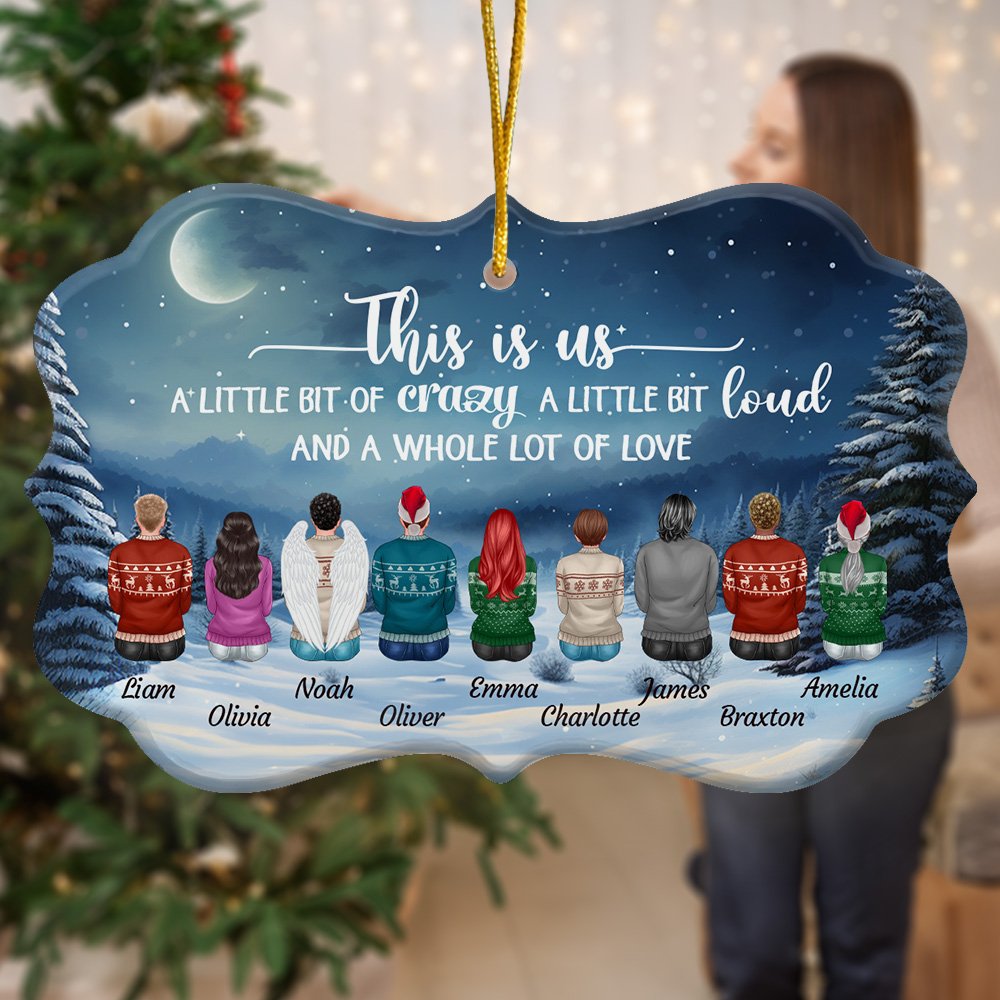 El mensaje "This Is Us A Little Bit Of Crazy A Little Bit Loud And A Whole Lot Of Love" está bellamente impreso en el adorno, transmitiendo profundas emociones entre seres queridos a través de simples baratijas.