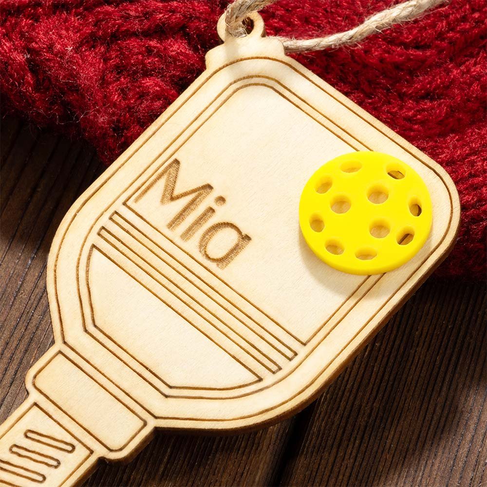 Este encantador adorno de madera de pickleball no es sólo para los árboles de Navidad. Cuélgalo del espejo retrovisor de tu coche, en la oficina, en el gimnasio de tu casa o en cualquier lugar donde quieras mostrar tu amor por el pickleball. Su versátil diseño lo hace perfecto para exhibirlo durante todo el año.