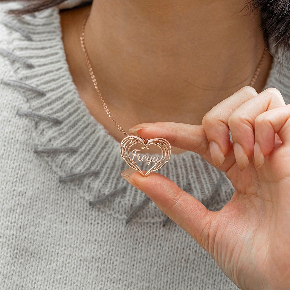 Este collar es exquisito y hermoso, con las alas del ángel de la guarda como la inspiración para el diseño, envuelto en la forma de un corazón de amor, que simboliza la protección de los seres queridos, trayendo una sensación de seguridad infinita y creencias firmes, también se puede utilizar para llevar cada momento que caminan juntos, guardando sus recuerdos y emociones comunes. El colgante de las alas en forma de corazón se hace en un diseño hueco, único y elegante, delicado y hermoso, más temperamento, y más versátil.