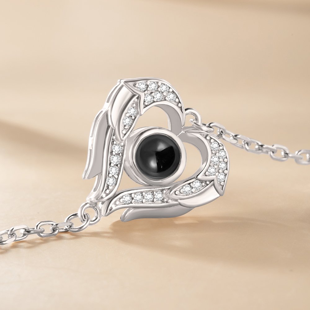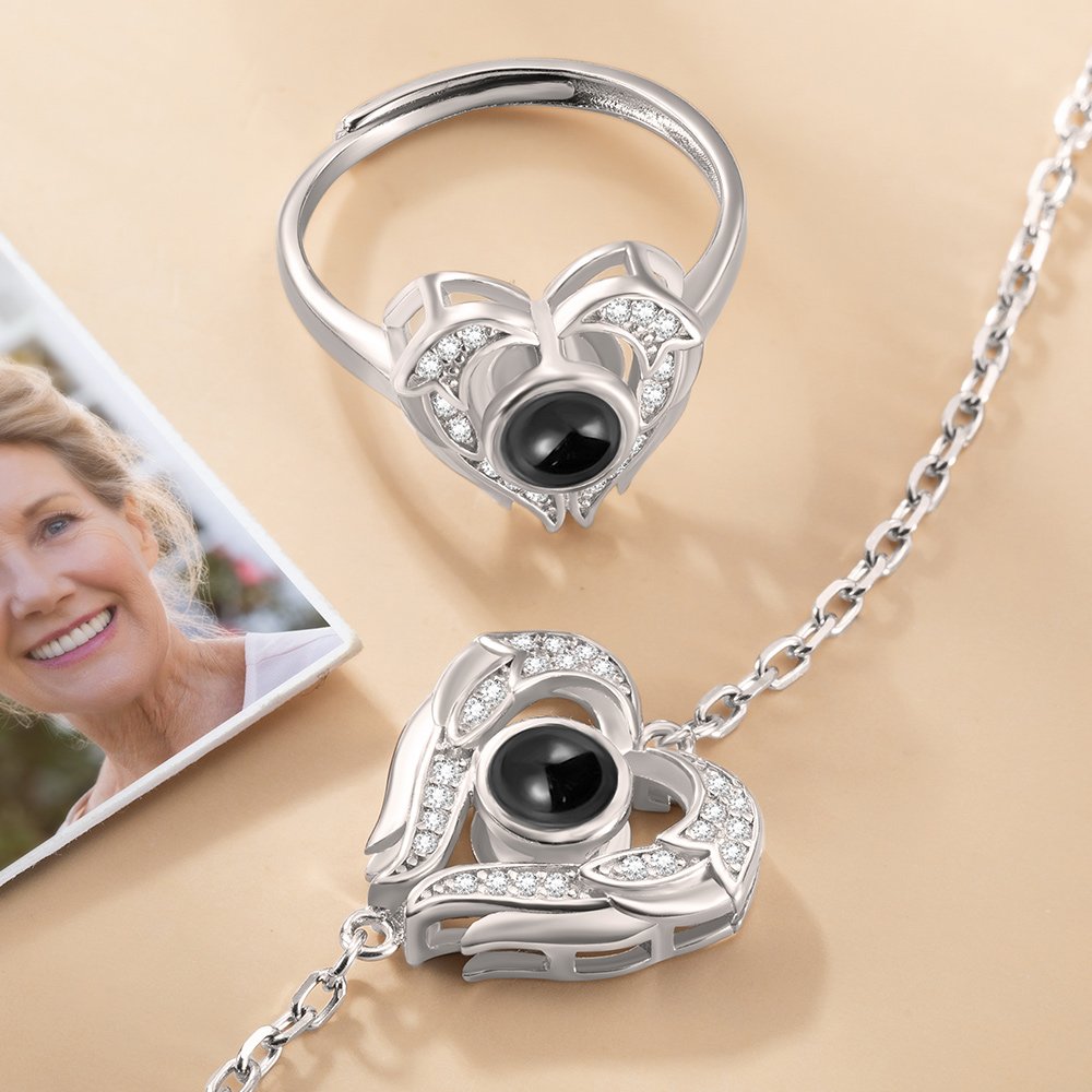 Elija entre personalizar un anillo o una pulsera. Independientemente de su preferencia, el aspecto personalizado combinado con el diseño de corazón y alas de ángel crea un accesorio versátil que complementa muchos estilos diferentes sin perder su valor sentimental.