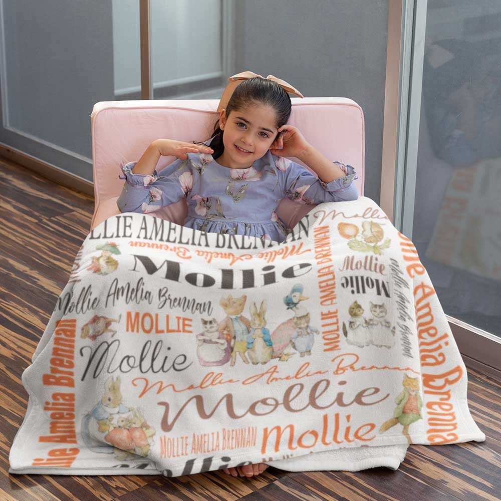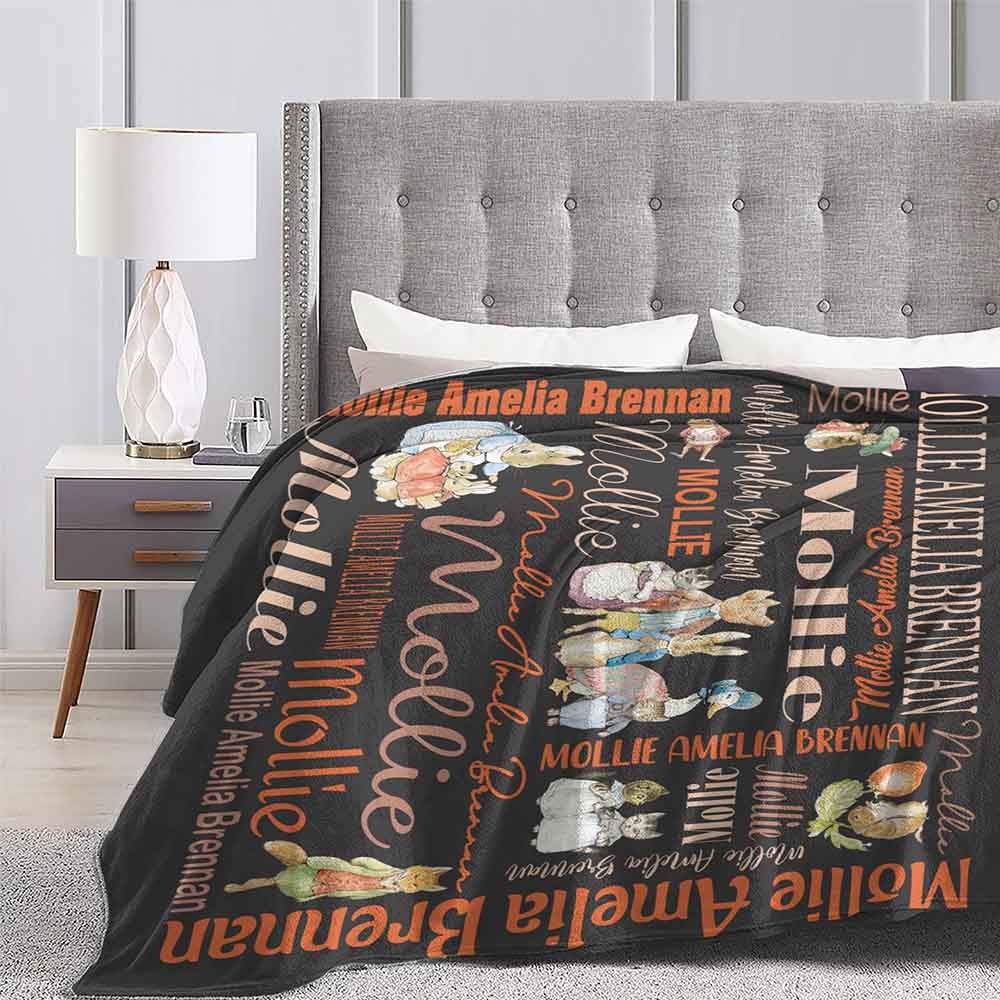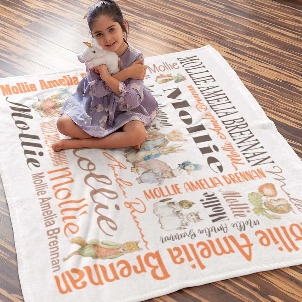 Nuestra manta personalizable con estampado de Peter Rabbit es el complemento perfecto para la colección de cualquier bebé o niño. Fabricada con franela antipilling, esta manta no sólo es suave y delicada con la piel delicada, sino que también garantiza un acabado duradero y resistente.