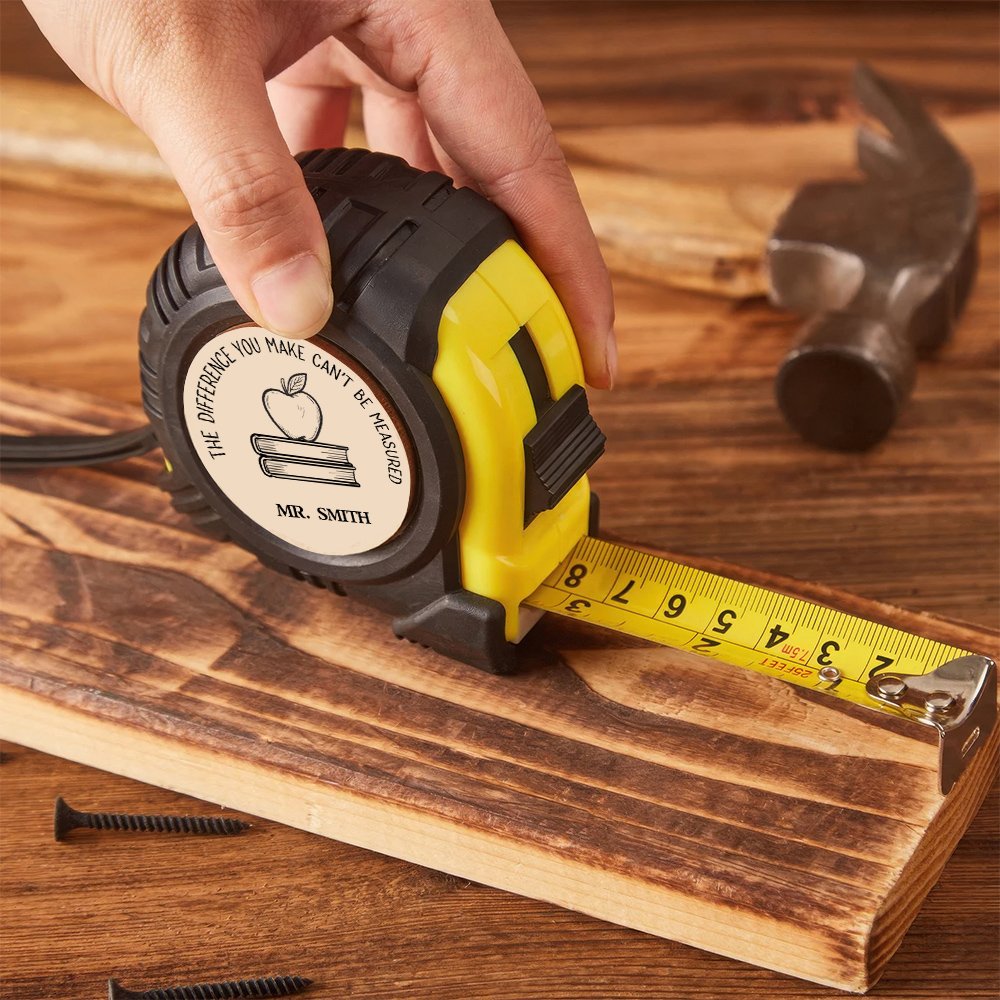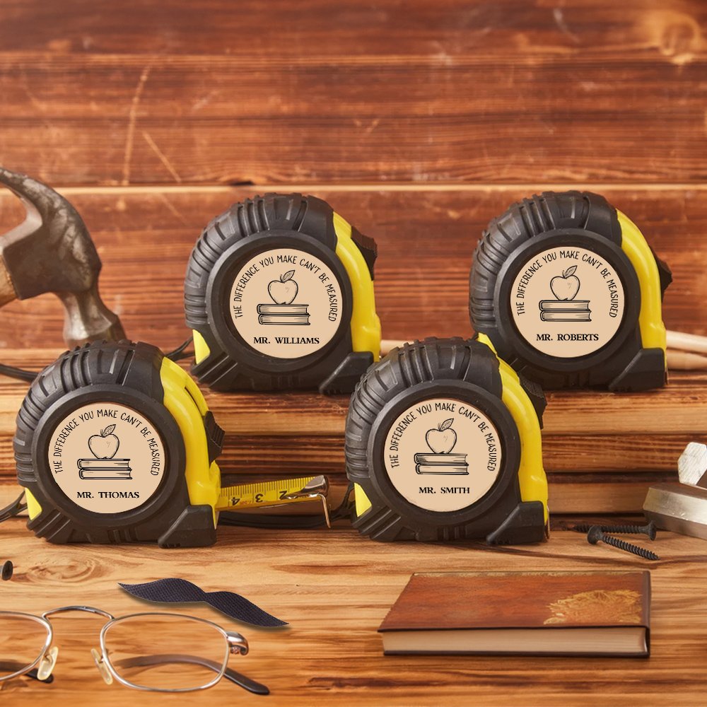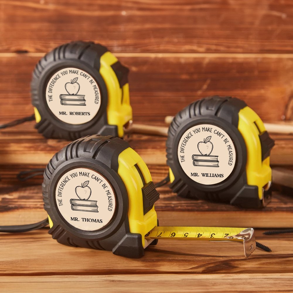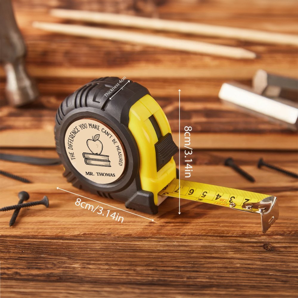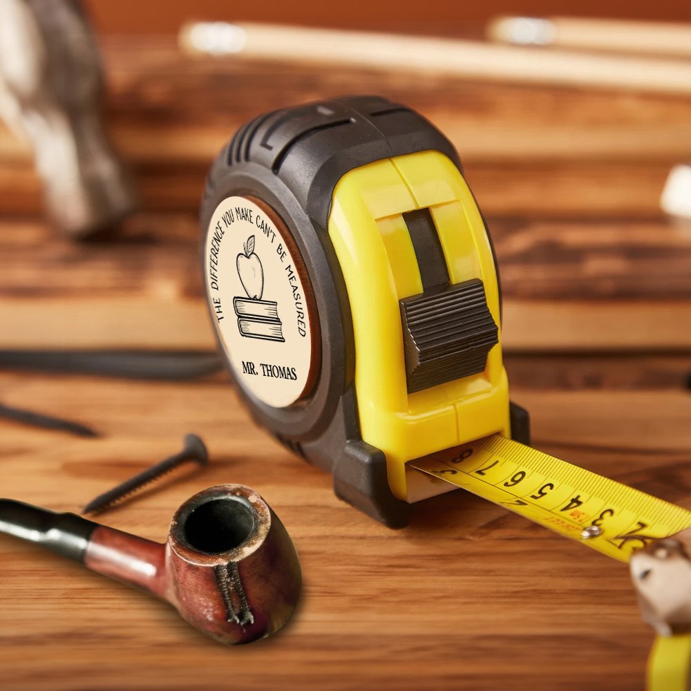 Esta cinta métrica combina los elementos clásicos de los maestros Manzana y libro y lleva impreso el título "LA DIFERENCIA QUE HACES NO SE PUEDE MEDIR", que transmite una gratitud y un respeto irremplazables por los maestros. Las manzanas representan la sabiduría y la gratitud, y los libros simbolizan el conocimiento y el crecimiento. La forma general es cálida y cultural. Además, cada cinta métrica puede personalizarse con un texto, como el honorífico del profesor, lo que convierte a esta pequeña herramienta en un recuerdo especial para un profesor.