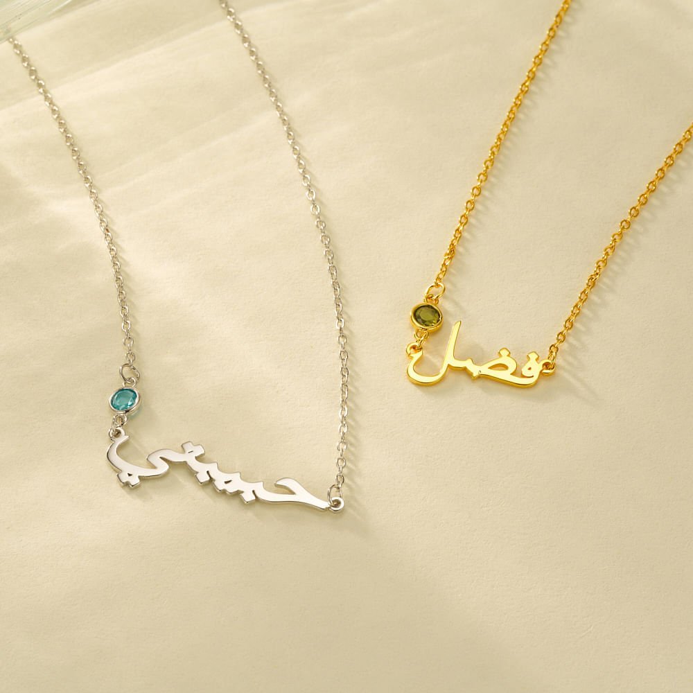 | Característica: | Piedra de nacimiento, sin alergia, sin óxido, nombre en caligrafía árabe |