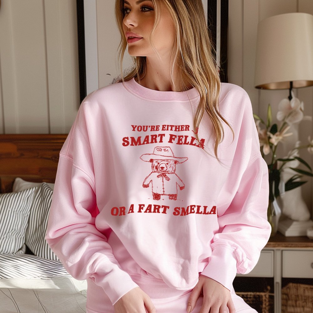El eslogan de la ropa es "You're either a Smart Fella or a Fart Smella". El eslogan es humorístico y juguetón, y muestra rápidamente la personalidad única de quien lo lleva. Tanto si te ríes de ti mismo como si flirteas con tus amigos, puede hacer que la gente sienta la diversión de la vida en un ambiente relajado y agradable.