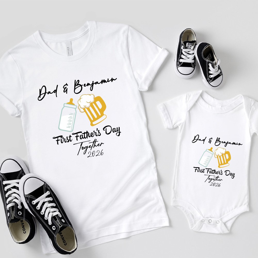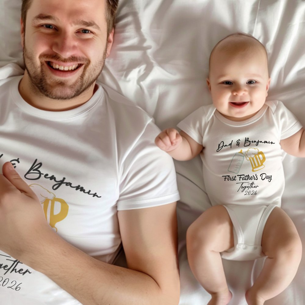 Añade personalidad personalizando la camiseta y los bodies con el texto que desees. Este diseño personal celebra el vínculo especial entre padre e hijo, haciendo que el regalo sea realmente único y añadiendo un ambiente extra de corazón que papá apreciará.