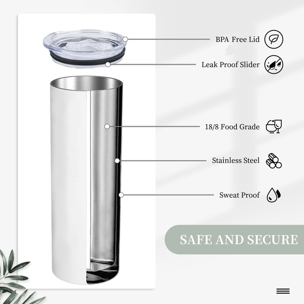 El paquete incluye un vaso delgado de 20 oz sublimado con tapa, pajita y 1 pieza de cepillo práctico.