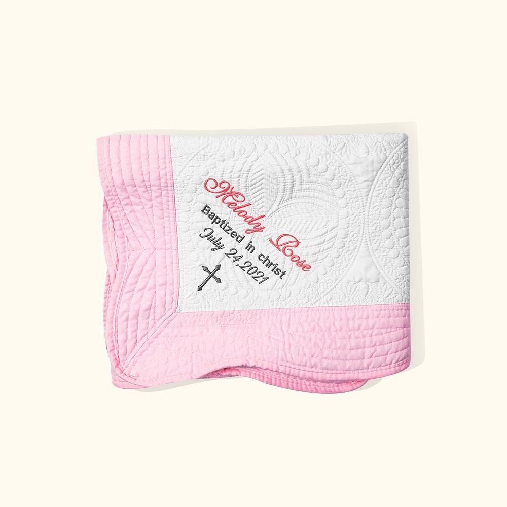 Preciosos bordes festoneados para añadir un toque de delicadeza. Muy duradero, fabricado con tejido de primera calidad y bordado con texto personalizado. Un maravilloso recuerdo para transmitir de generación en generación.