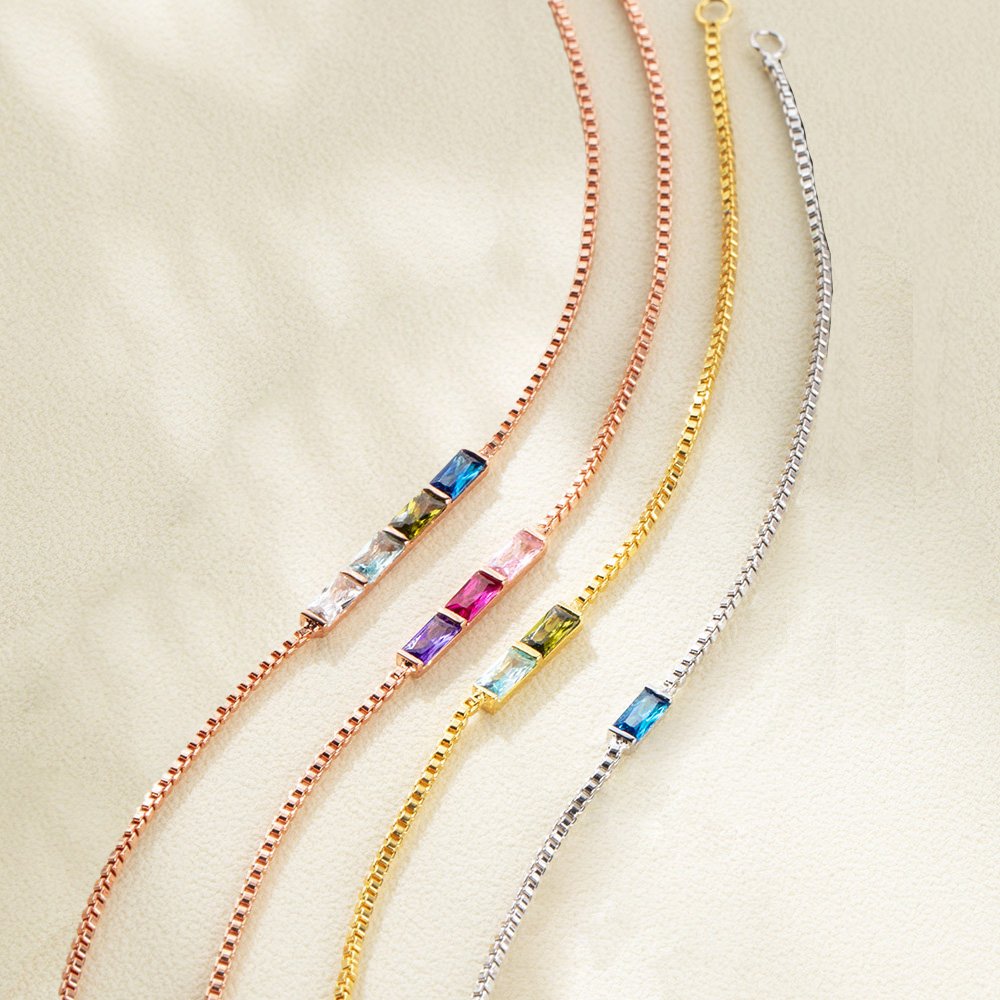 Nuestra pulsera de piedras de nacimiento baguette está hecha de cobre de alta calidad chapado en oro de 18 quilates, apta para pieles sensibles, resistente al óxido y nunca se cae, es elegante y romántica y nunca pasa de moda.