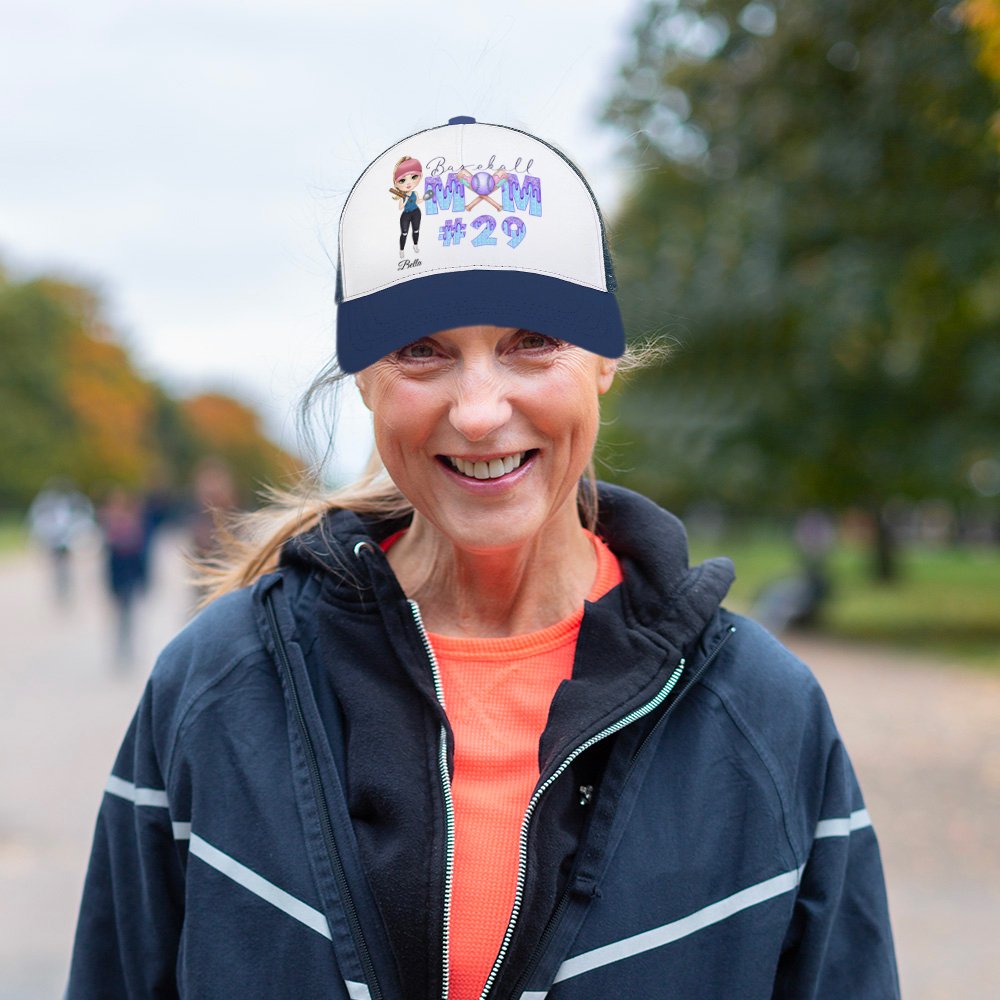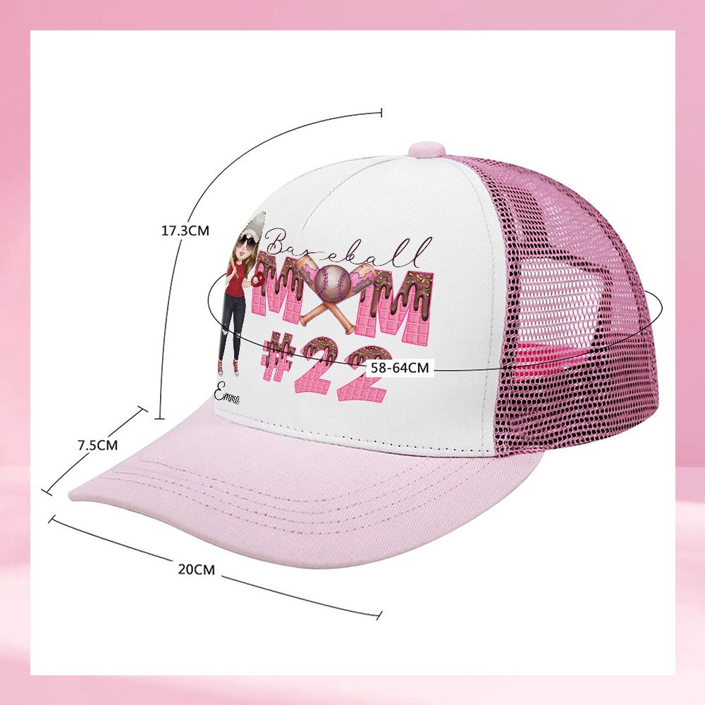 Esta elegante gorra de béisbol se puede personalizar con un personaje único de mamá beisbolista, un nombre y un número que gotee helado, creando un accesorio único en su especie. Para mostrar el amor por el deporte y expresar tanto la individualidad como la pasión por el béisbol.