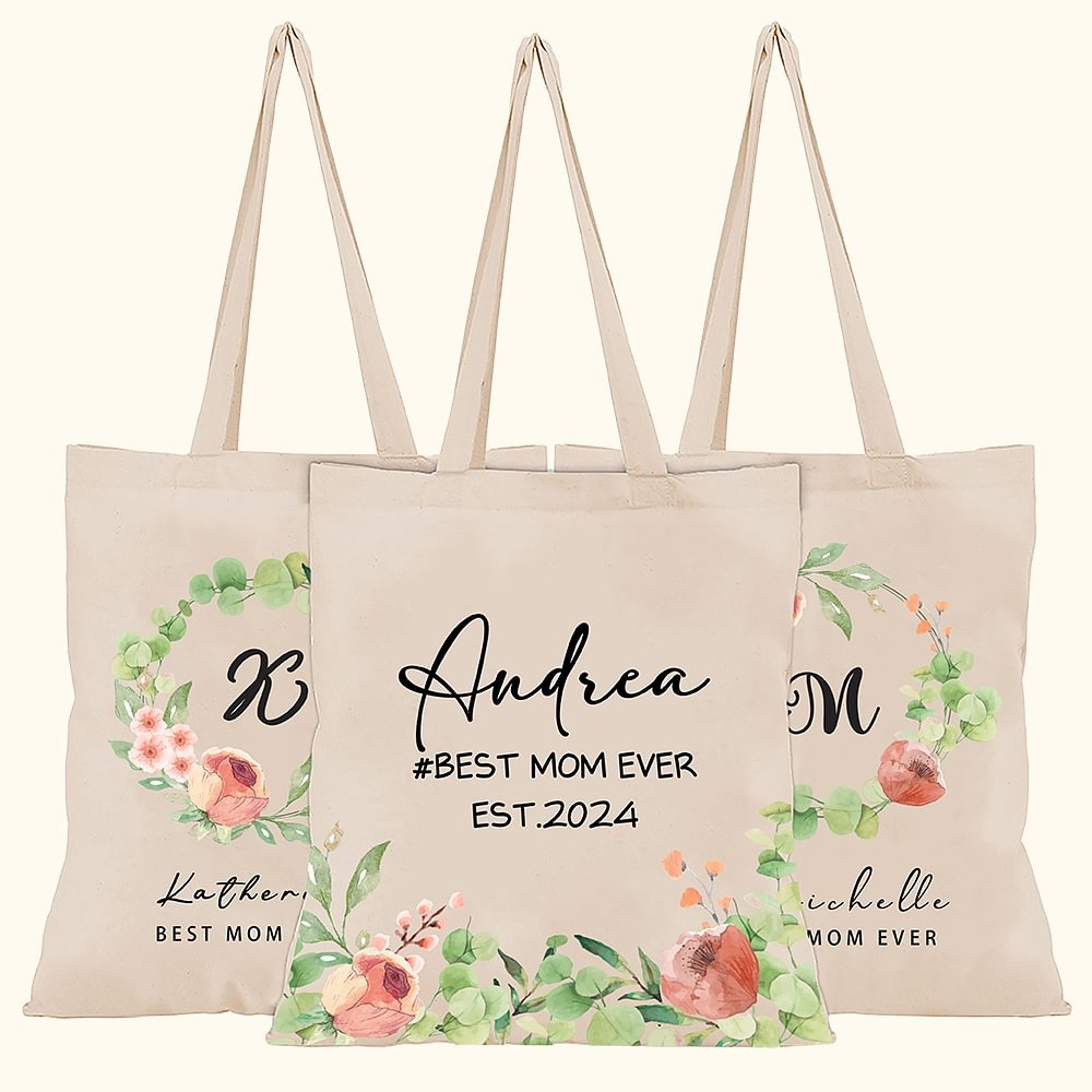 La bolsa de lona cuenta con tres diseños florales únicos para elegir, lo que permite la personalización con su nombre, iniciales, fecha especial o cualquier texto de su elección.