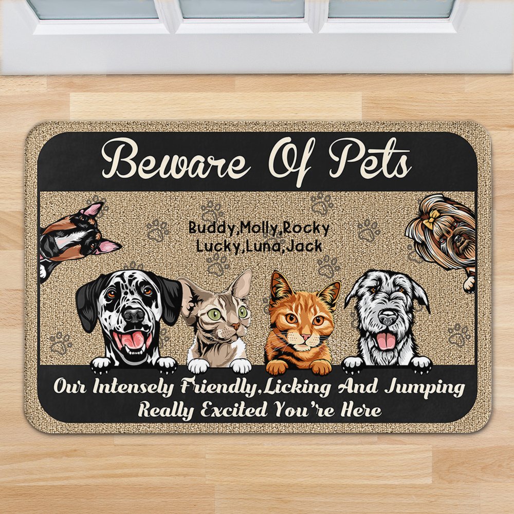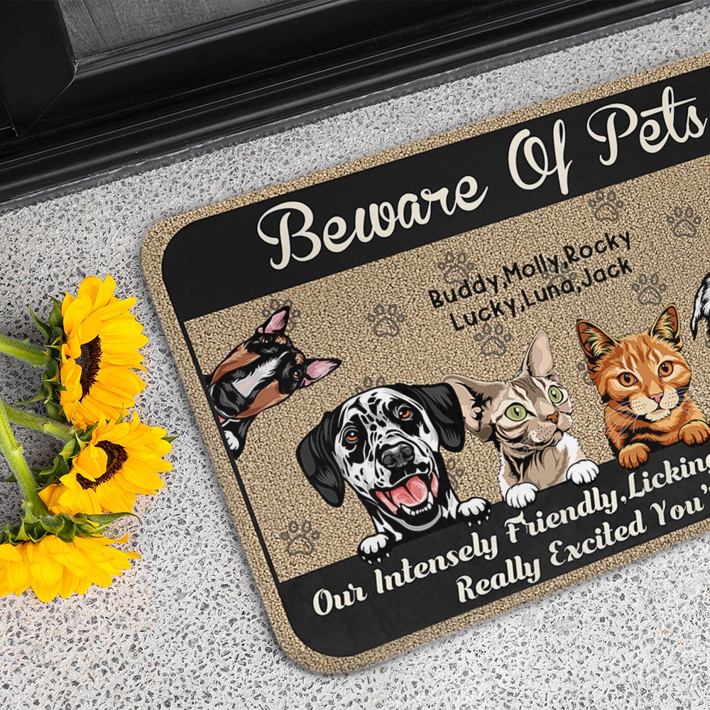 Alfombrilla de puerta personalizada Beware of Pet Funny Door Mat with Non-Slip Backing Cat Dog Pet Lovers Gift for Home Office Decor