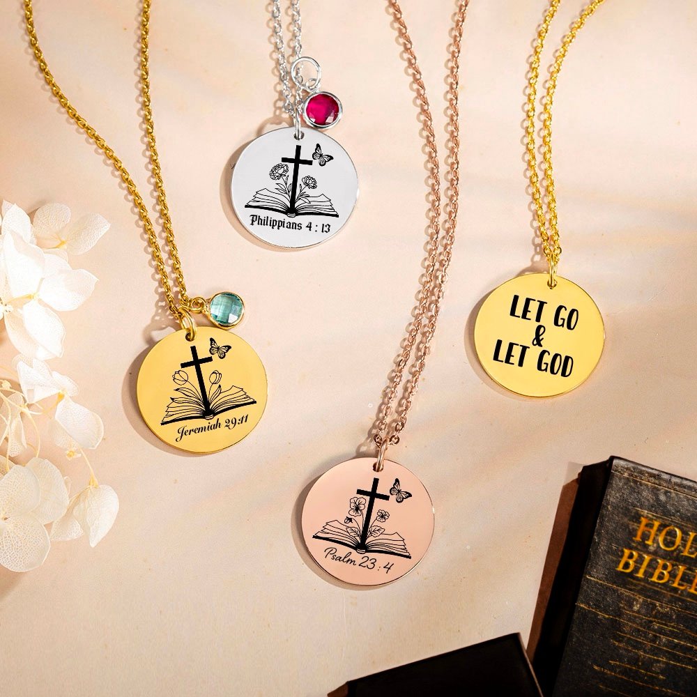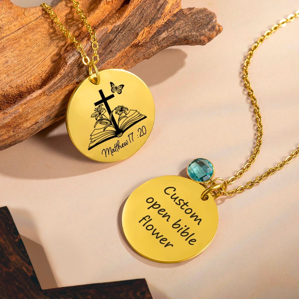 Con la opción de personalizar tanto el anverso como el reverso del colgante, este collar te permite añadir un toque personal. Elige la flor de nacimiento y la fecha que tengan significado para ti o para el destinatario. Graba un preciado versículo bíblico en la parte posterior para que sirva de inspiración y aliento en la vida diaria. E incluso añada una piedra de nacimiento para hacerlo aún más único.