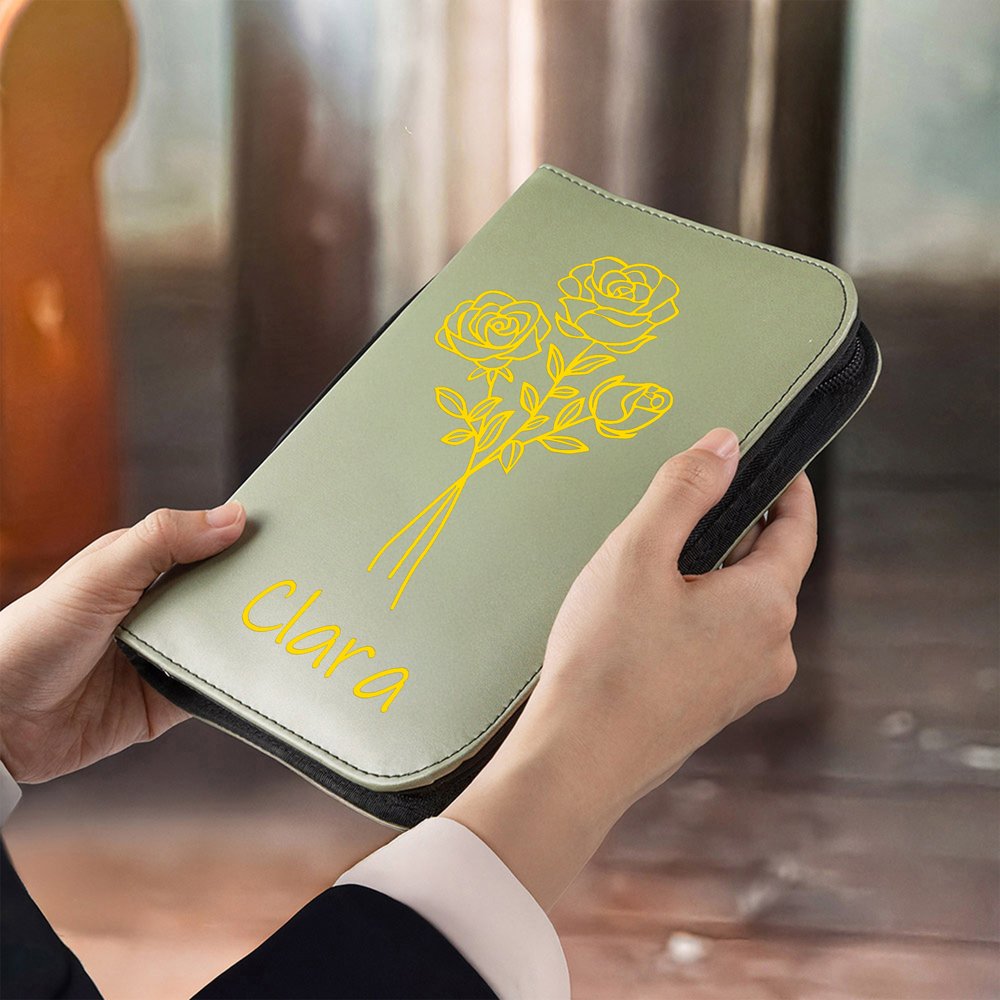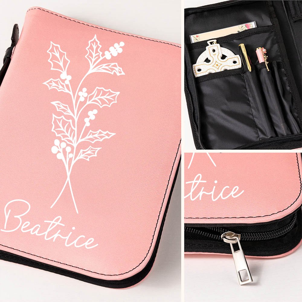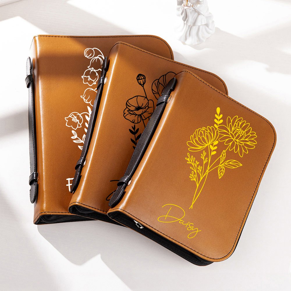 Personalizada Flor de Nacimiento Versículos de la Biblia PU Leather Book Cover with Name Birthday Anniversary Gift for Christians Women