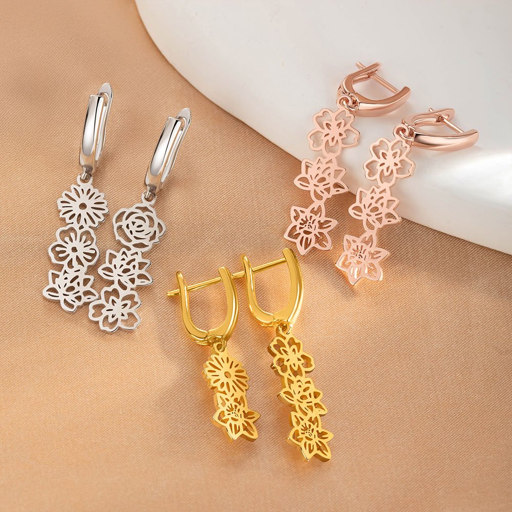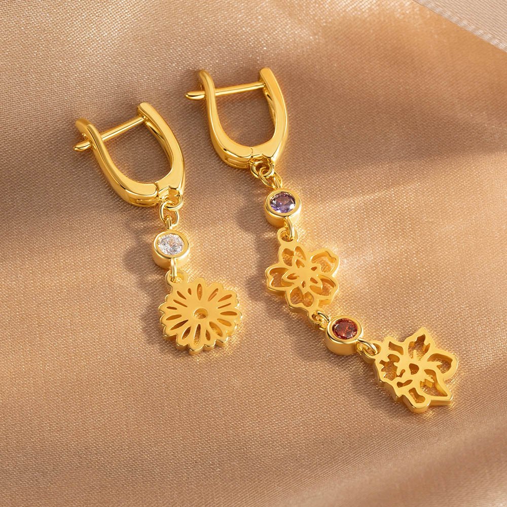 Los pendientes se inspiran en la flor y la piedra de nacimiento del mes, combinando a la perfección la suavidad de las flores con el brillo de las piedras preciosas. Las flores de los doce meses son realistas y las piedras preciosas, deslumbrantes. Puede elegir el estilo y el número de flores y piedras preciosas según sus necesidades. Llevarlos es como prender en sus orejas su momento romántico exclusivo, que desprende un encanto único y encantador.