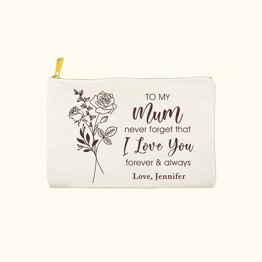 Cada bolsa de maquillaje se puede personalizar con la flor de nacimiento de la madre y un texto sincero, por lo que es un regalo con un significado único para reflejar su amor y aprecio por ella.