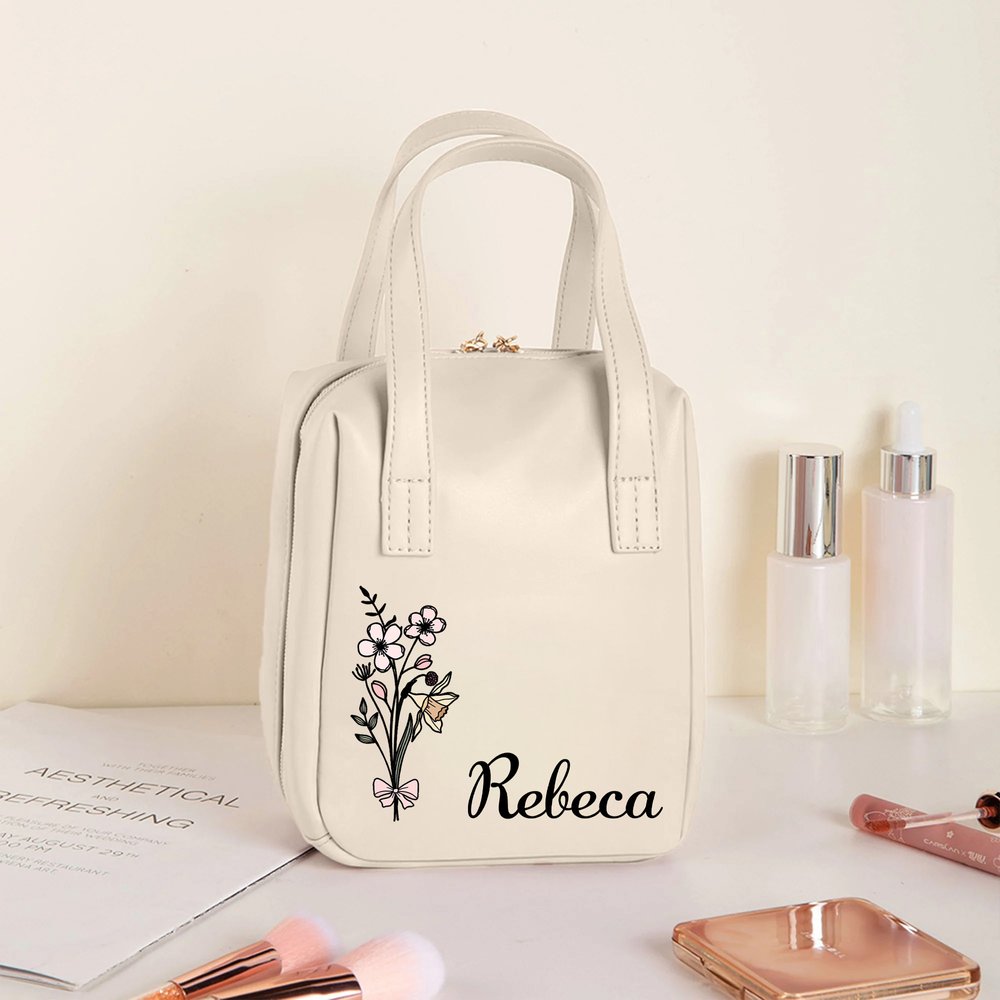 Este elegante neceser de maquillaje combina la suave belleza de las flores de nacimiento con un alegre lazo rosa, acentuado con un nombre personalizado en una elegante fuente. Cada detalle refleja una mezcla perfecta de romanticismo e individualidad, convirtiéndolo en una pieza elegante que muestra tanto el gusto como el sentimiento.