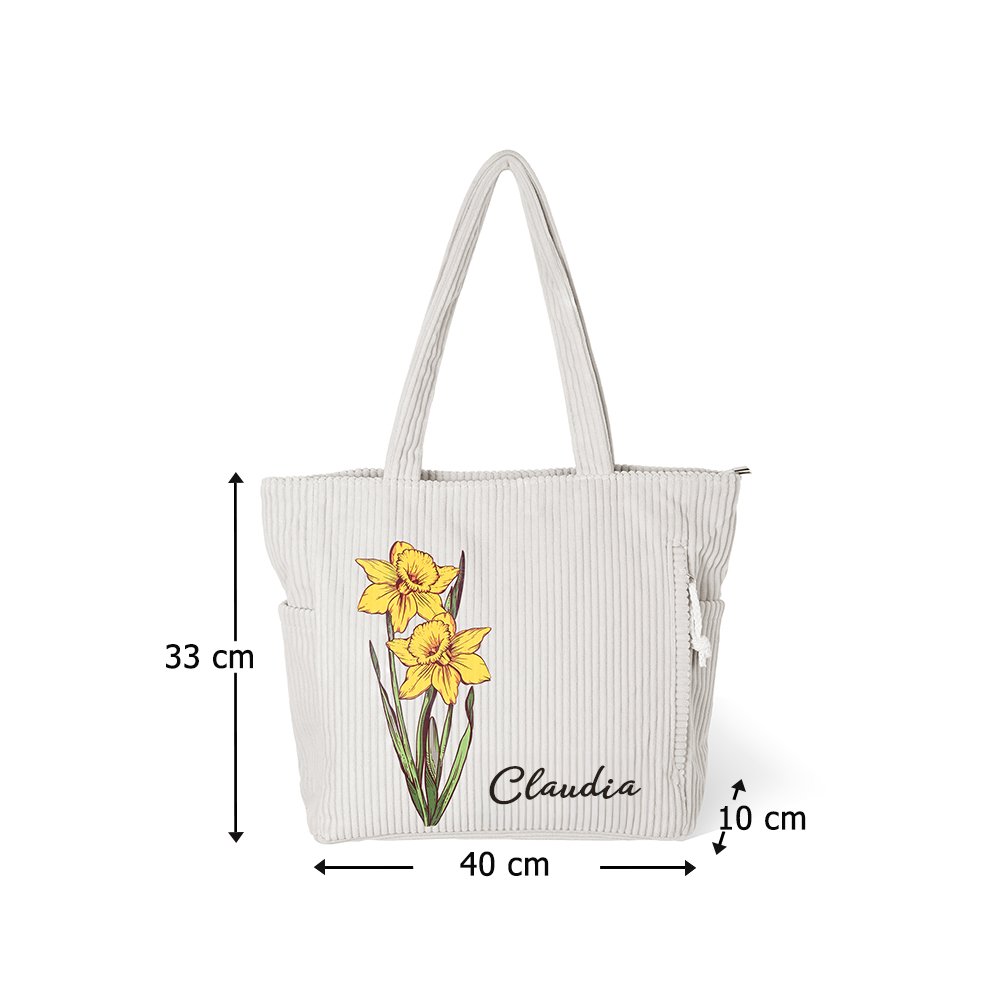 Centrado en el exclusivo motivo de la flor de nacimiento, este diseño se combina con la personalización del nombre. Su estilo suave y elegante irradia una sensación de ritual personal, alineándose con precisión con las preferencias estéticas femeninas. El tejido de pana evoca de forma natural una textura vintage, elevando el bolso cotidiano más allá de la monotonía y convirtiéndolo en un accesorio distintivo que combina el atractivo visual con el significado conmemorativo.