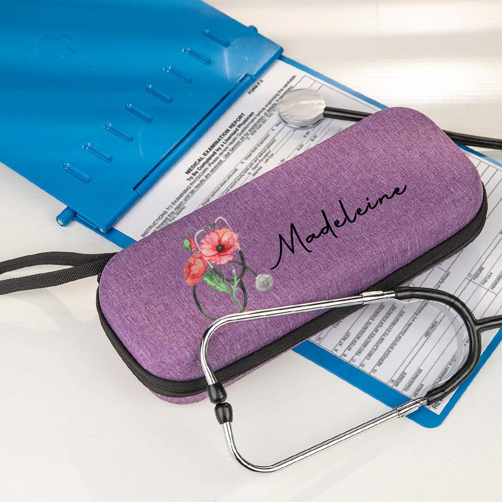 Este estuche para estetoscopio presenta un impresionante diseño floral que representa el mes de nacimiento del destinatario. Cada flor está ilustrada de forma intrincada y bellamente expuesta en la bolsa con un patrón de estetoscopio, añadiendo un toque de belleza natural y simbolismo. Cada bolsa puede personalizarse con un nombre, añadiendo un toque personal y haciéndola exclusivamente suya.