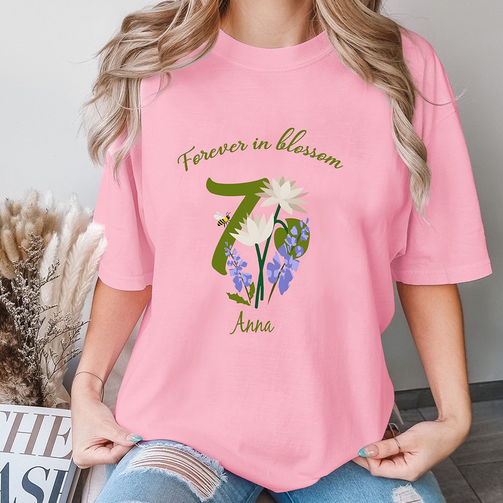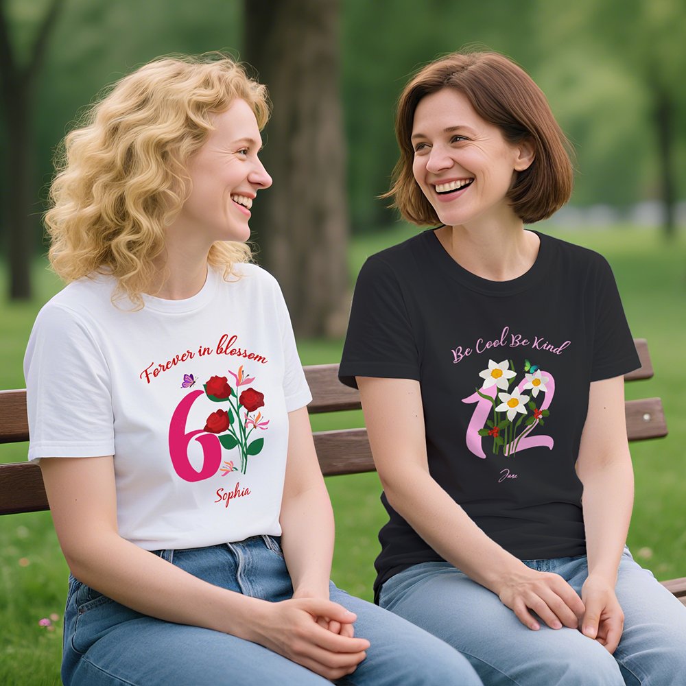 Esta camiseta presenta diseños basados en las flores natales correspondientes a cada mes, con cada flor simbolizando significados únicos y representando tus rasgos de personalidad y tu encanto interior. Puedes personalizar el color de la camiseta, los colores de las flores y añadir tu nombre, creando una prenda que es exclusivamente tuya.