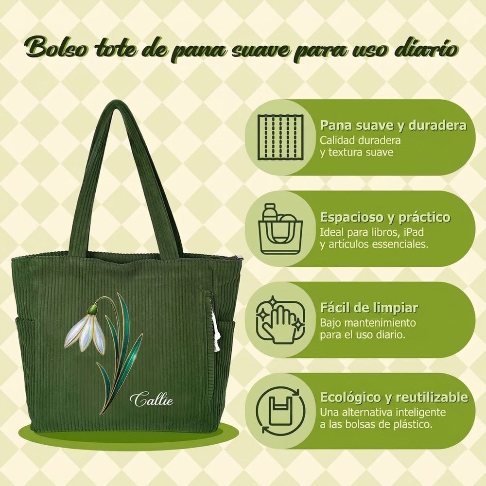 Bolso tote de pana personalizado con flor de nacimiento y nombre gran capacidad para uso diario oficina y viajes regalo de cumpleaños para mujeres