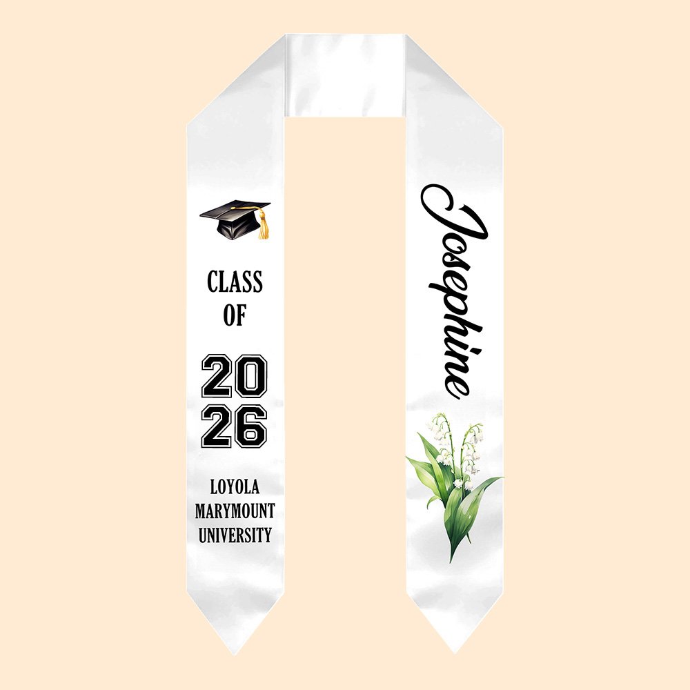 Esta estola de graduación llama la atención por su exclusivo diseño de flor de cumpleaños y está disponible en 9 colores, como blanco, rosa, rojo, amarillo, etc. Al mismo tiempo, puede personalizar el nombre, el año de graduación y el nombre de la universidad de graduación para crear un recuerdo único e inolvidable para los graduados.