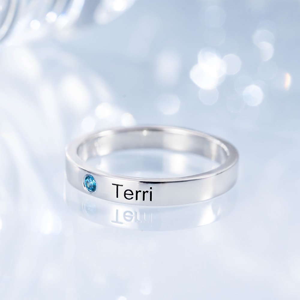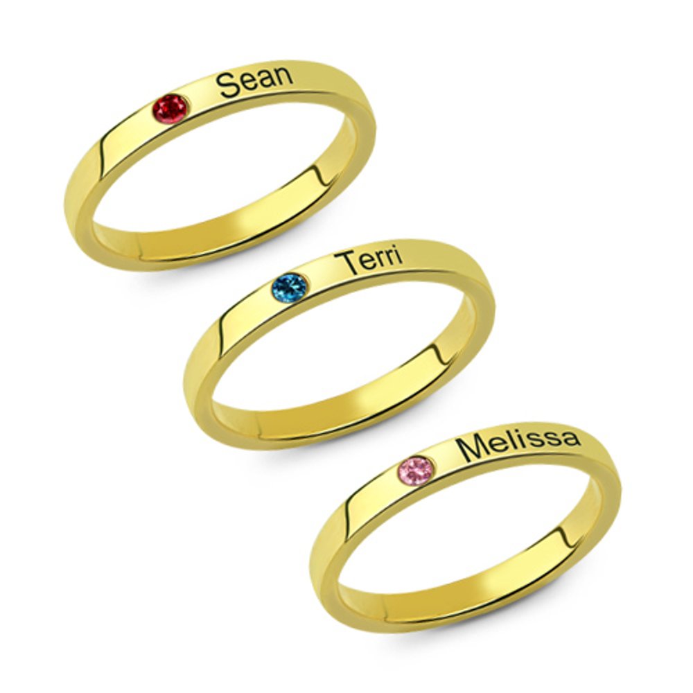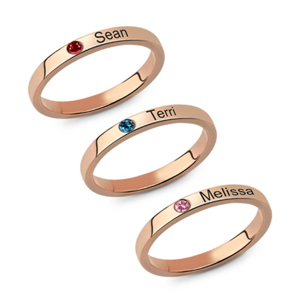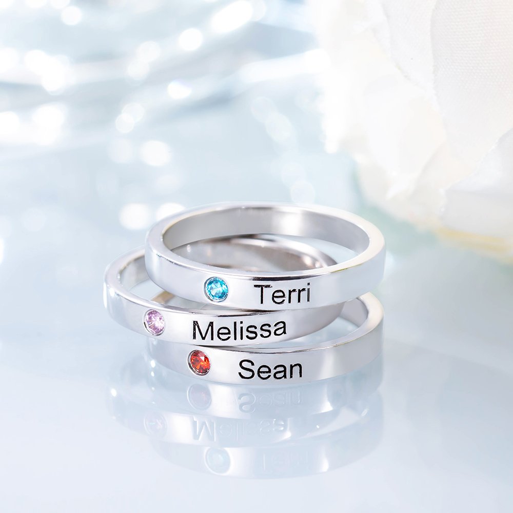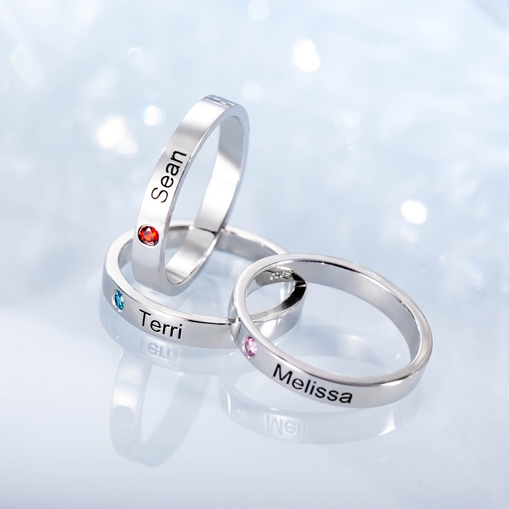 - Los anillos son de plata. En cada anillo se puede grabar un nombre y luego engarzar una bonita piedra de nacimiento en el centro.