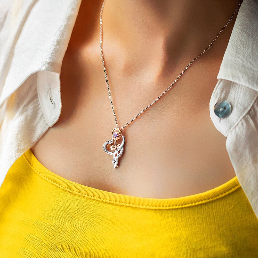 Elaborado con materiales de primera calidad, este collar está diseñado para ser duradero y resistente. El colgante en forma de rosa está minuciosamente detallado, y las piedras de nacimiento han sido cuidadosamente seleccionadas por sus vibrantes colores y simbolismo, garantizando una pieza impresionante y llamativa.