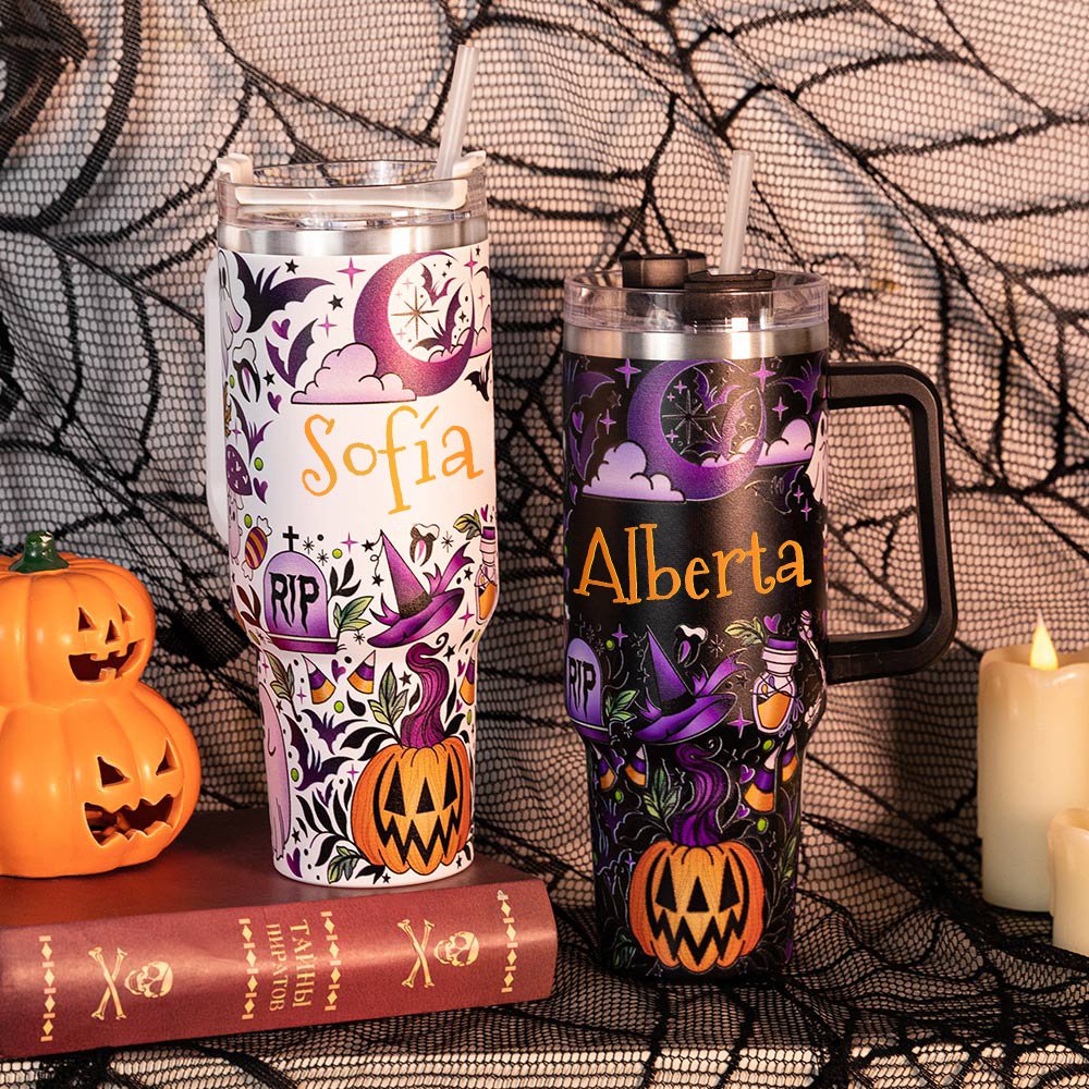 El diseño de este vaso se inspira en los elementos clásicos de Halloween, y la calabaza, el murciélago, la luna y otros motivos están ingeniosamente integrados en el cuerpo del vaso, añadiendo misterio a la fiesta. También puedes personalizar el nombre del vaso para hacerlo aún más distintivo.