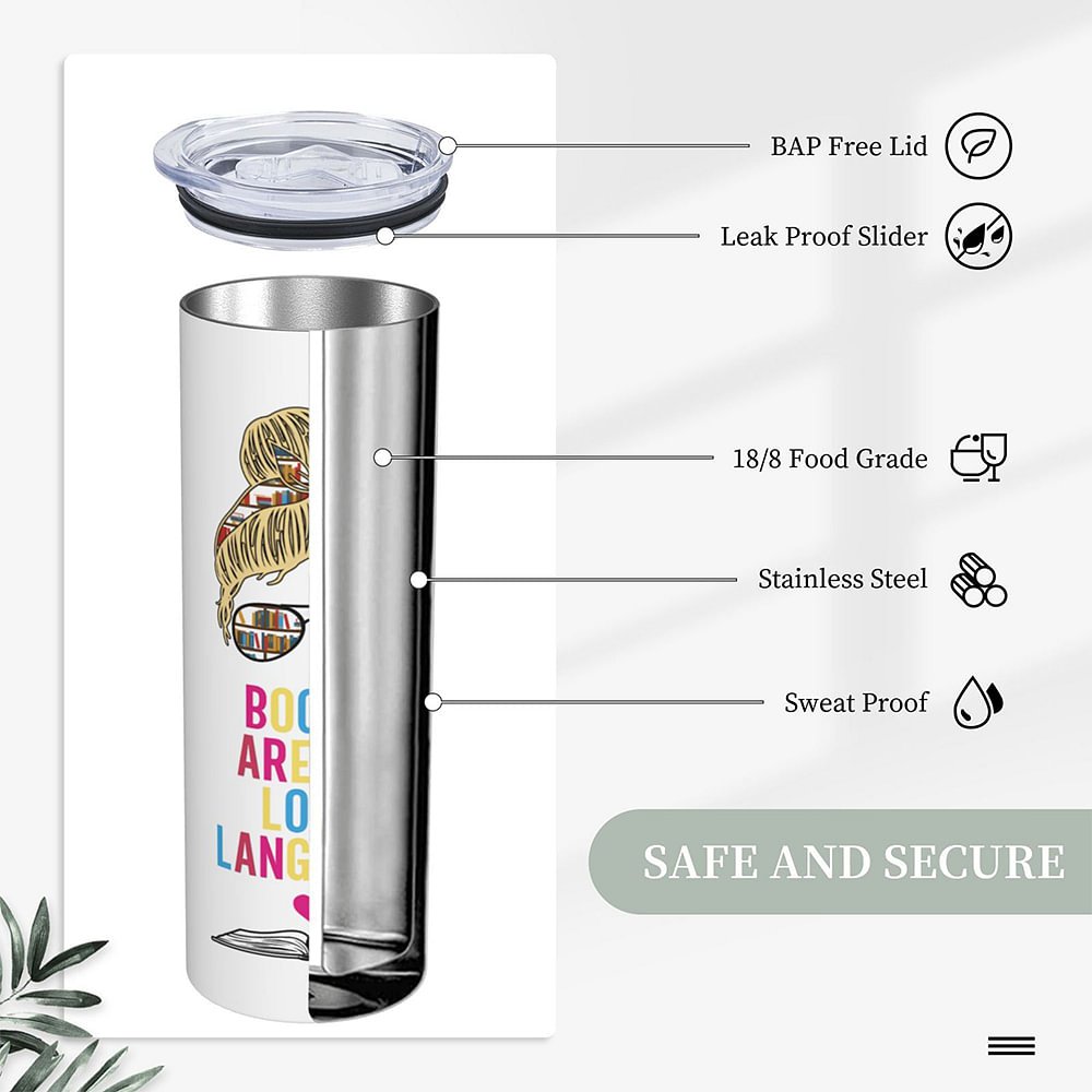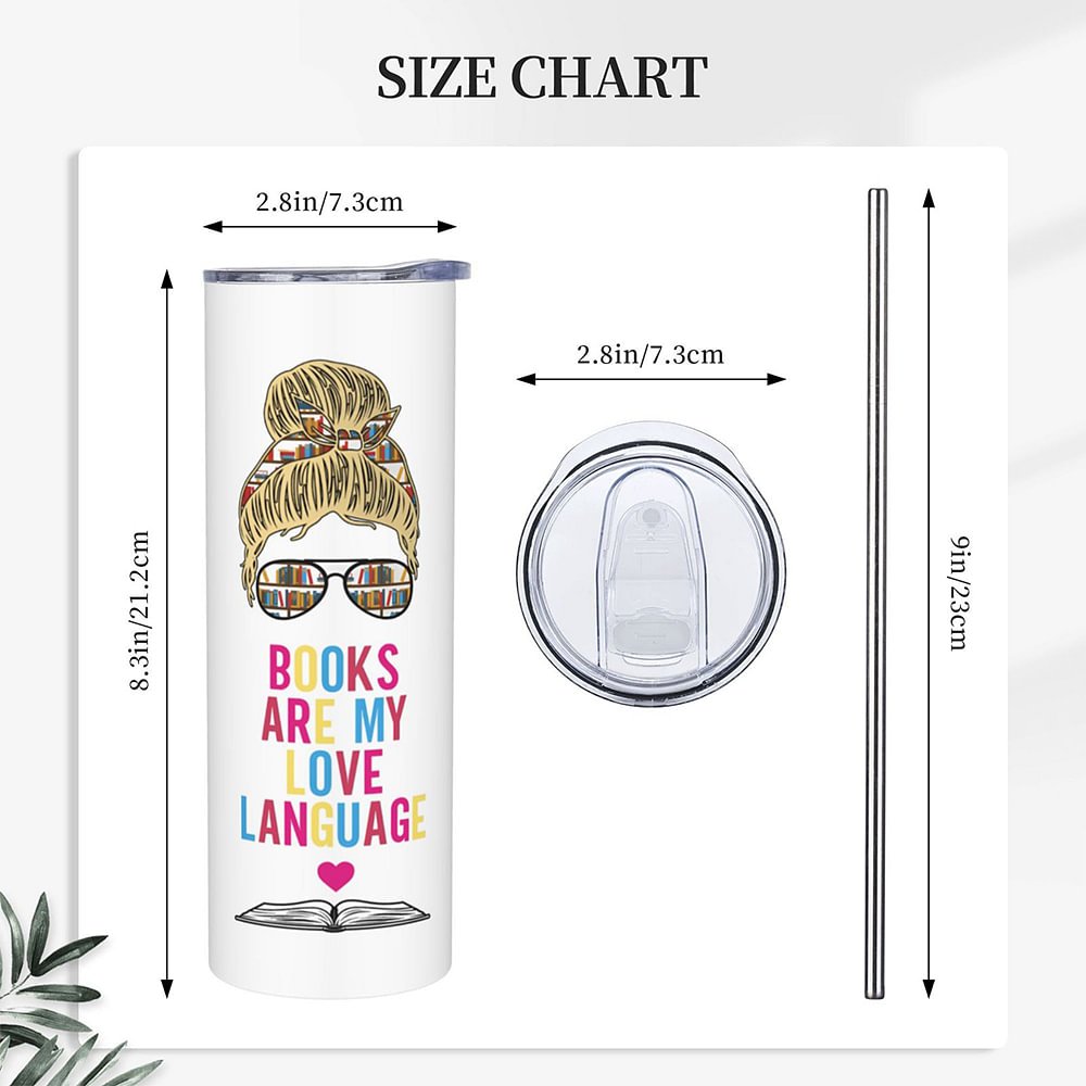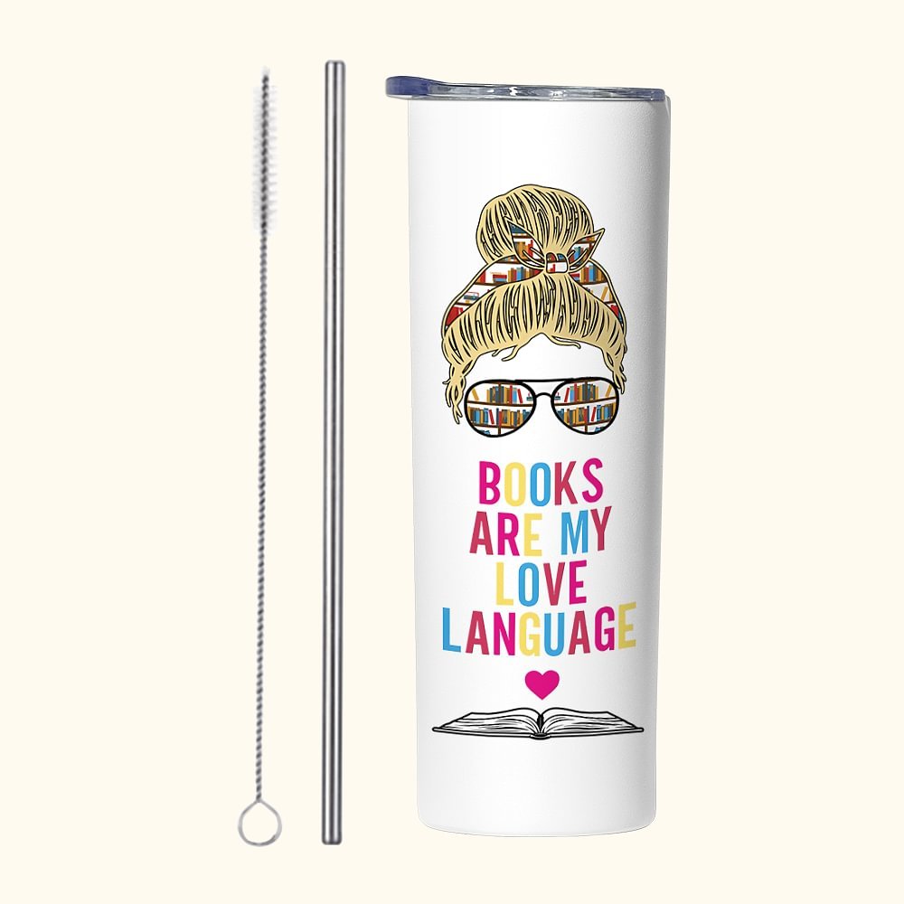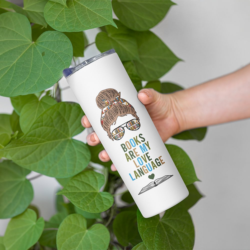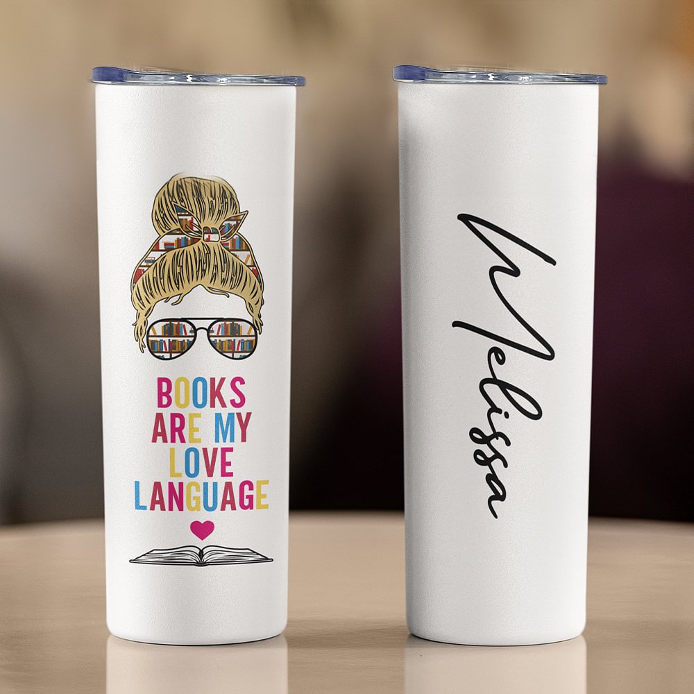 Con la opción de añadir un nombre o un título, puedes hacer de este vaso un regalo único para ese amante de los libros tan especial en tu vida. Imagina su alegría cuando reciba un vaso grabado con su nombre y adornado con la frase "Los libros son mi lengua de amor". Es un regalo único y bien pensado para todos los amantes de los libros, bibliotecarios, lectores, bibliófilos y profesores.