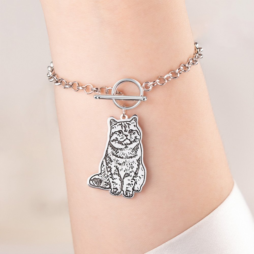 Esta exquisita pulsera le permite exhibir a su querida mascota de una forma realmente especial. Un grabado personalizado transforma su foto favorita en una pieza de joyería que capta la esencia de su querida mascota.