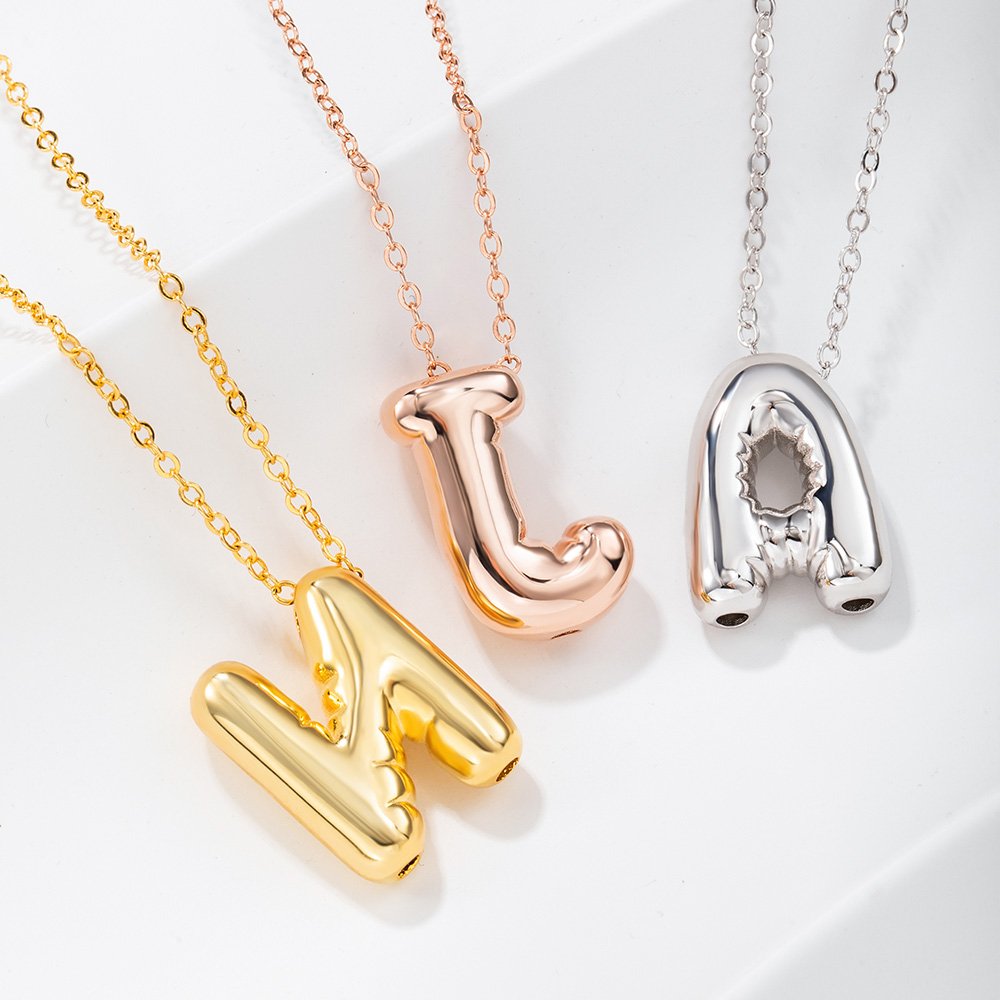 Cada collar contiene letras del alfabeto, representadas en un estilo único de "letra burbuja" que añade un toque de diversión y creatividad. Estas letras imitan la forma y la flotabilidad de los globos, lo que confiere a la pieza un aire ligero y desenfadado.