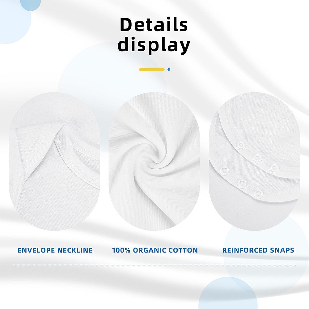 Los productos se fabrican mediante un proceso de sublimación para garantizar la máxima calidad. Además, utilizamos algodón 100% para confeccionar todos nuestros bodies para que sean suaves, elásticos y duraderos. Esto significa que no irrita la delicada piel del bebé, permitiéndole disfrutar de una gran comodidad. Adecuado para bebés de 0 a 2 años.